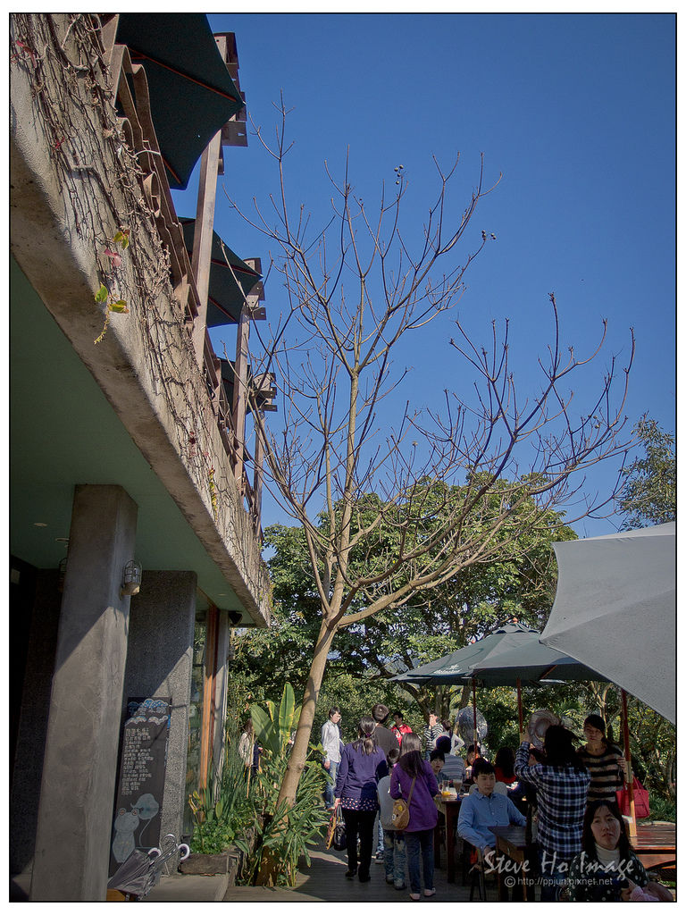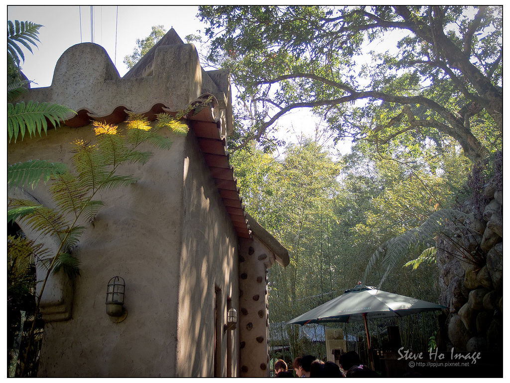入園後要步行一小段坡道,第一個映入眼簾,很有特色的建築物是鳥vs人餐廳