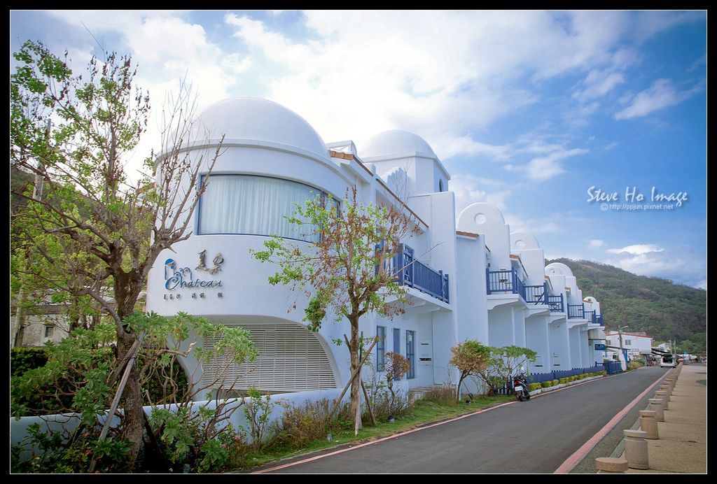 ▼ 在前往外澳海邊的入口處,有一個藍白船形建築,充滿地中海希臘風情的夏朵沙灘渡假會館,看起來粉不錯,