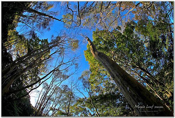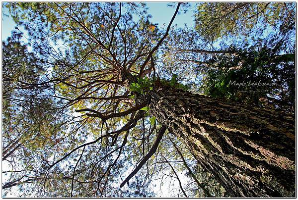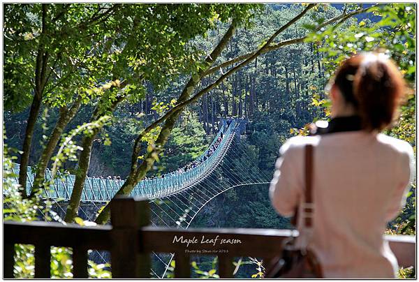 ▲ 相較於楓葉的五彩繽紛,奧萬大吊橋的另一邊是一種古木參天的松林風情