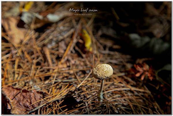 ▲ 一顆不知名的菇類在古木參天的松林中更顯眇小