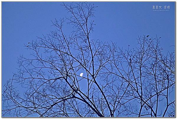 嶺間雲霧飄渺,天空還掛著月亮,宛如仙境搬的夢幻