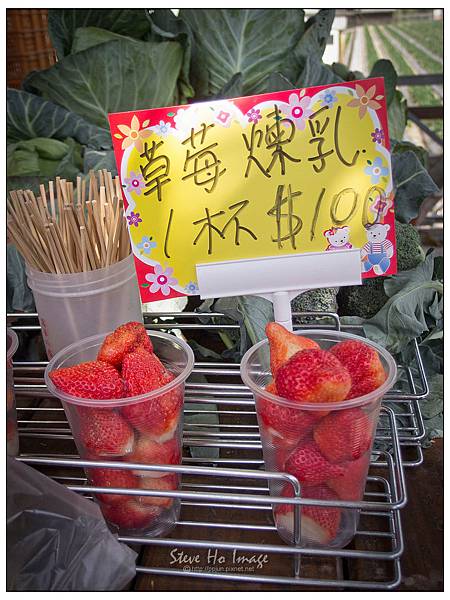 ▼ 你沒有看錯!這一小杯淋上煉乳的草莓就要100元!但與我們自己採的草莓相比,他的草莓又大又紅,有特別挑選過,加上我們沒有帶煉乳,Jeremy又吵著要吃,就忍痛給他買下去了!說真的還不錯吃啦~