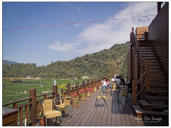 ▼ 還有一整排的桌椅,供您坐著,邊吃剛採的草莓,邊悠閒地欣賞這片開闊的草莓園風光