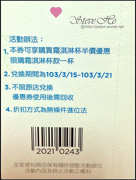 憑截角可享霜淇淋杯半價優惠,限3/15~3/21使用。