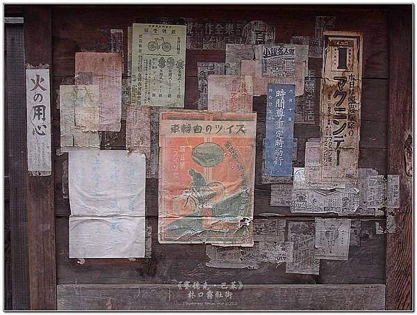 15.木製的電線桿及公佈欄上貼著很用心的做出各種仿舊海報及標語