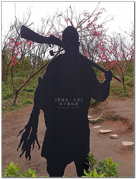32.櫻花台也是人造山丘,山丘上的櫻花也是假的,為片中多次出現的重要場景,這邊也有一個莫那魯道的人形立牌跟你一起拍照。