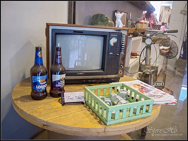 ▼ 門口旁放著一個古早小電視,前方二罐啤酒,巧妙地帶出悠閒的氛圍
