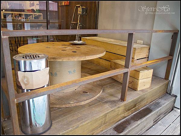 ▼ 門口右側還有一個戶外用餐區(吸煙區),同樣以原木材質來搭配