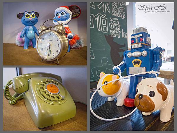 ▼ 餐廳中間有一個小圓桌,也擺滿了各式與貓有關的小東東,但皮皮君覺得這些貓玩偶心情感覺不是很好說~