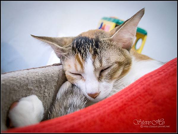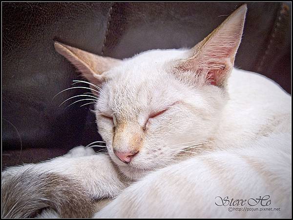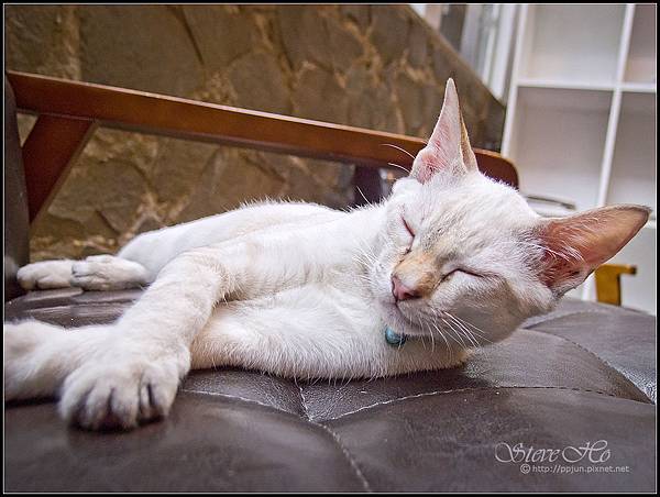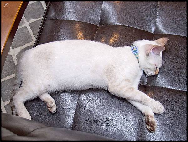 ▼ 小白(以下為皮皮君亂取的名字)就這樣大辣辣地躺在皮沙發上佔了一個位子