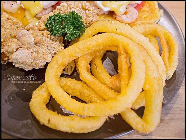 ▼ 至於[洋蔥圈]就普普,不會難吃,也沒有什麼驚喜 (後來皮皮君發現是我自己忘了沾蕃茄醬啦...Orz)
