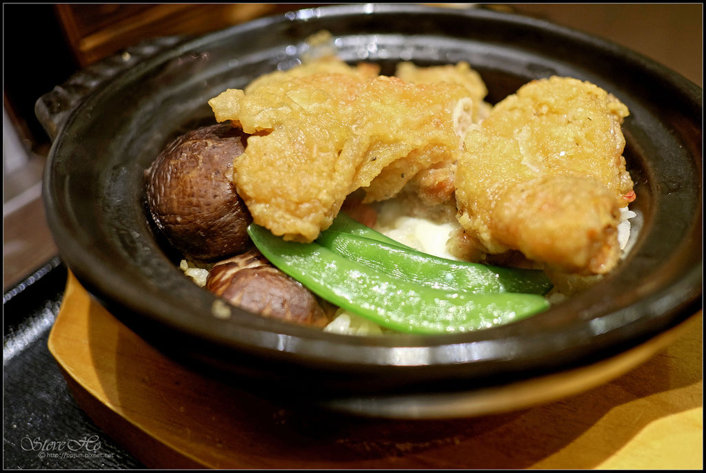 ▼ 土鍋炊飯最顯眼的就是上面那塊雞腿排了!