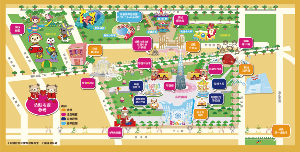 ▲ 上圖為2014新北市歡樂耶誕城燈飾地圖 (資料來源為活動官網)