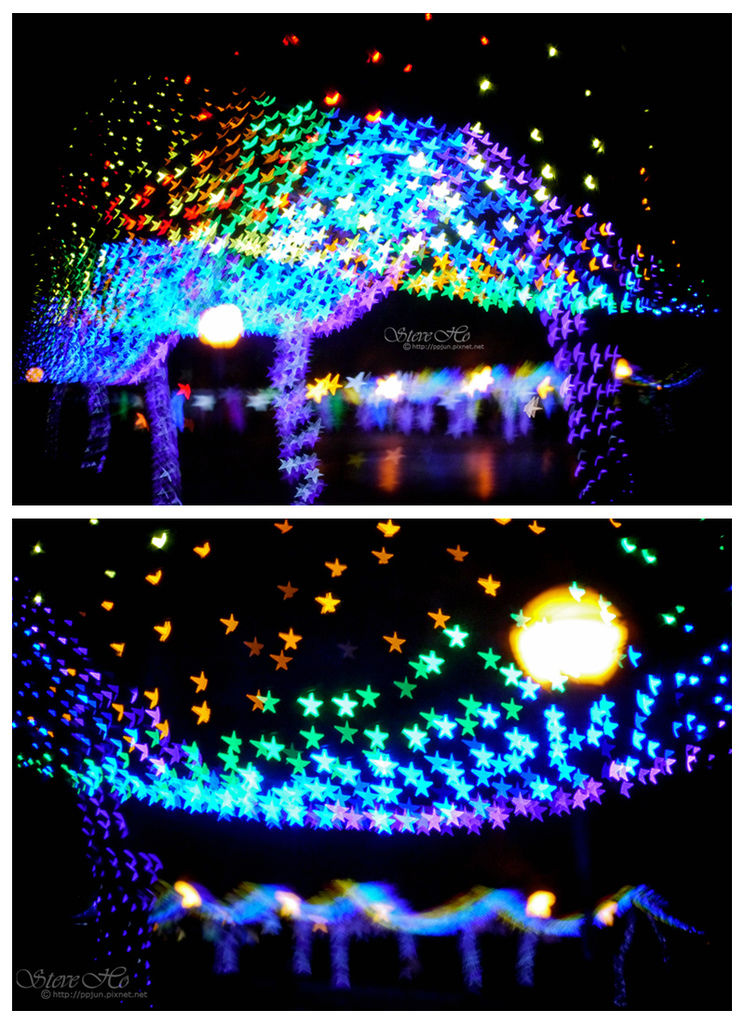 ▲ 浪漫燈橋上掛滿了星星,池面下的漣漪,波光粼粼地閃耀著光芒,好美好浪漫!