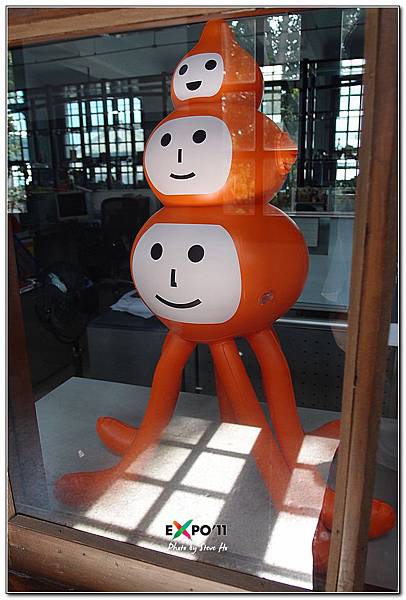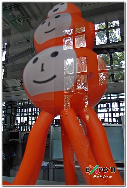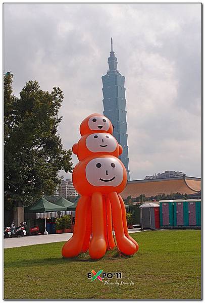 01.先從這隻3個猴子頭和6枝章魚腳("3頭6臂"?)的大會吉祥物[Master D]與台北代表建築101來做開場