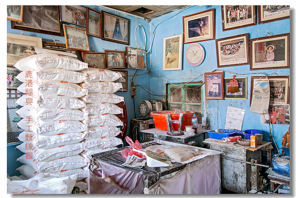 ▲ 屋內空間不大,堆滿了麵粉及各式製麵工具