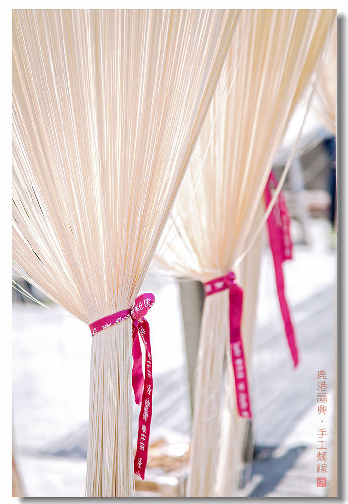 ▲ 綁成窗簾狀的麵線猶如精品般在太陽的照射下發出金黃色的光芒