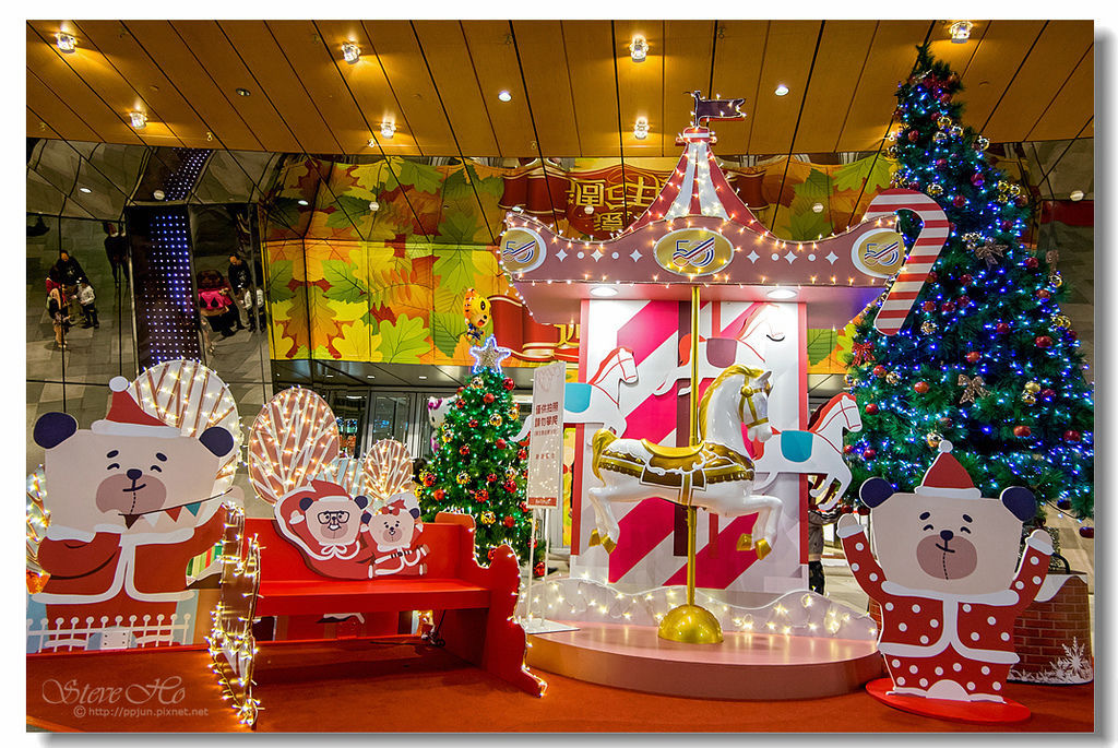 ▲ 「板橋大遠百」以旋轉木馬為主題,搭配桑塔熊及聖誕樹,充滿童話故書的情節