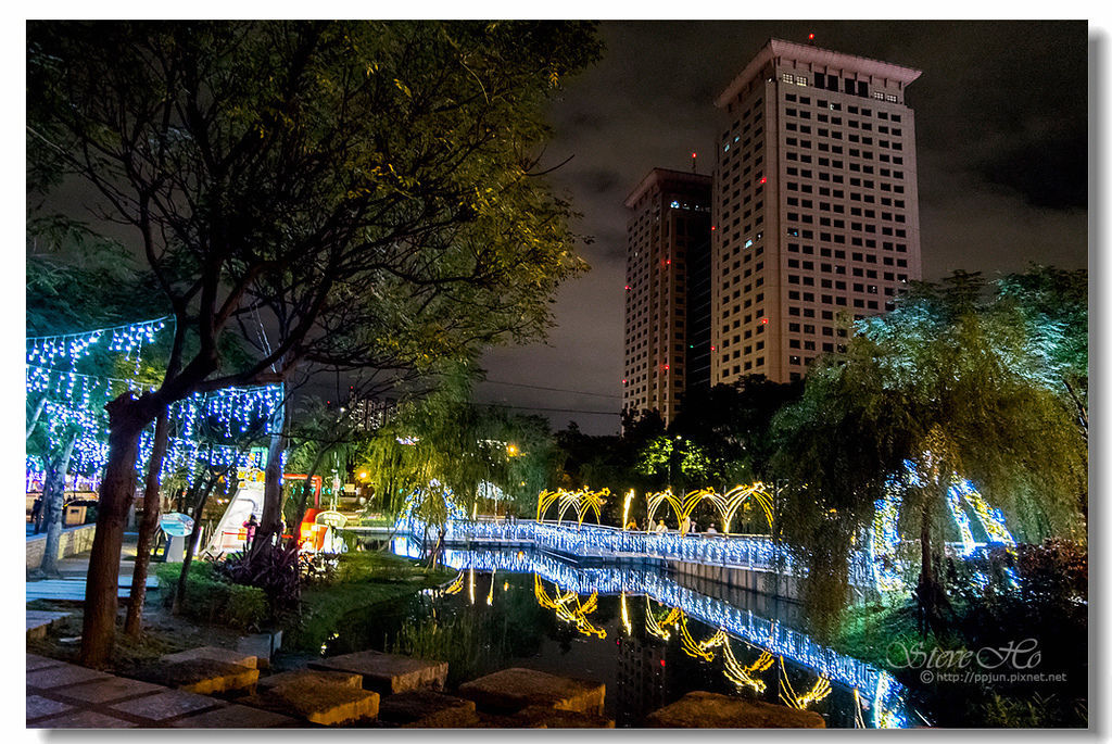 ▲ 浪漫燈橋上掛滿了星星,池面下的漣漪