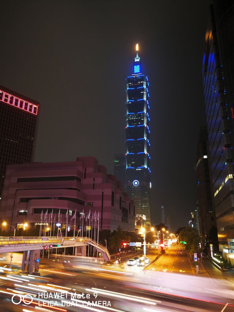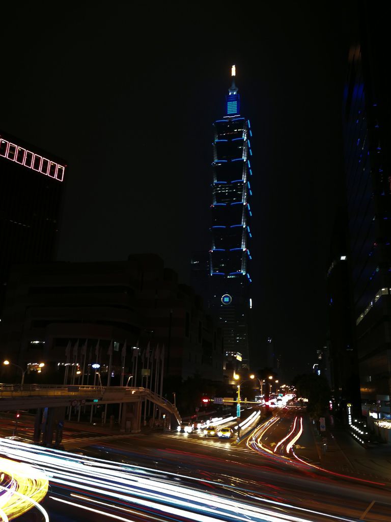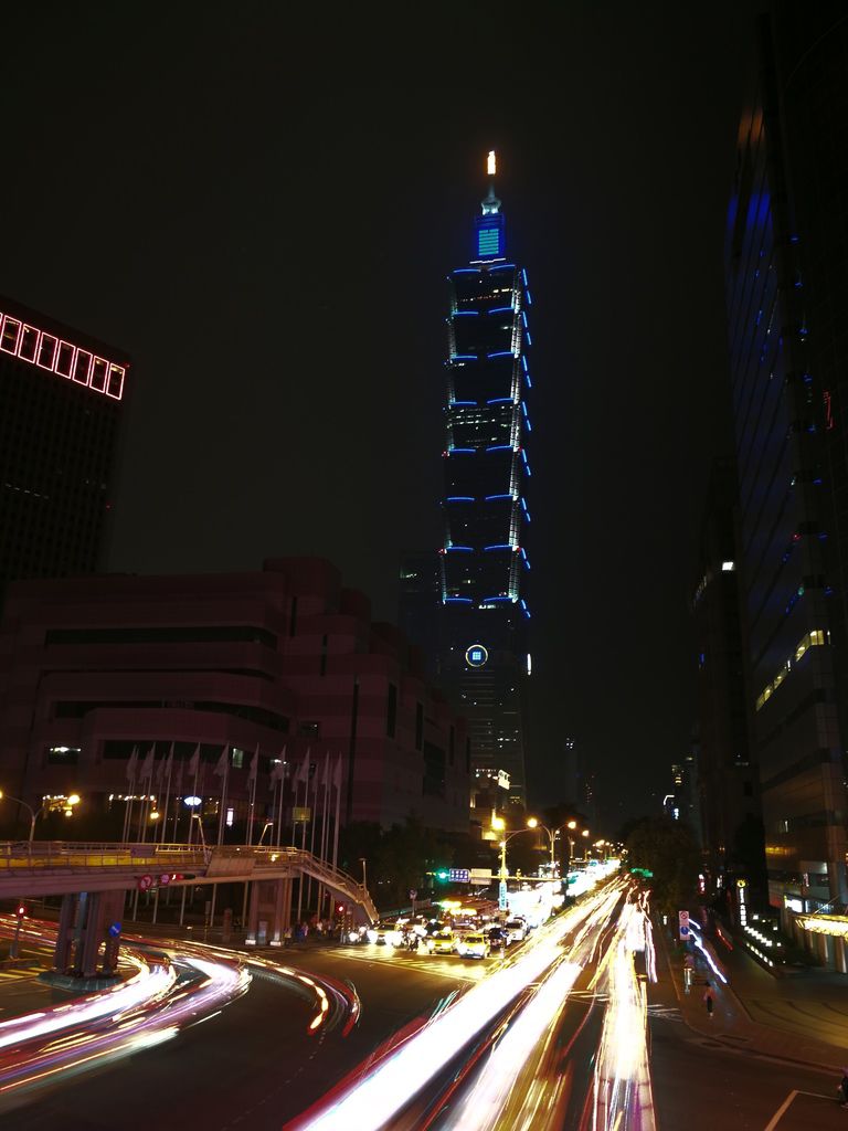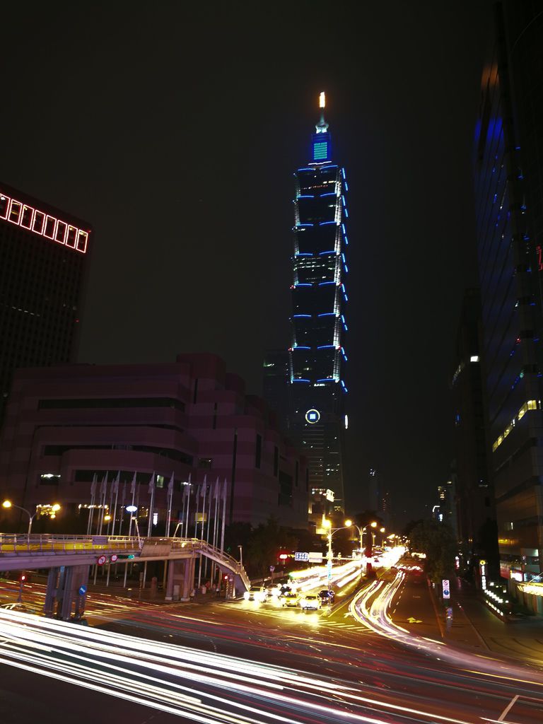 這個點是拍101和車軌的絕佳地點,可惜當天路口震旦大樓的燈光沒有亮起,不然會更美~