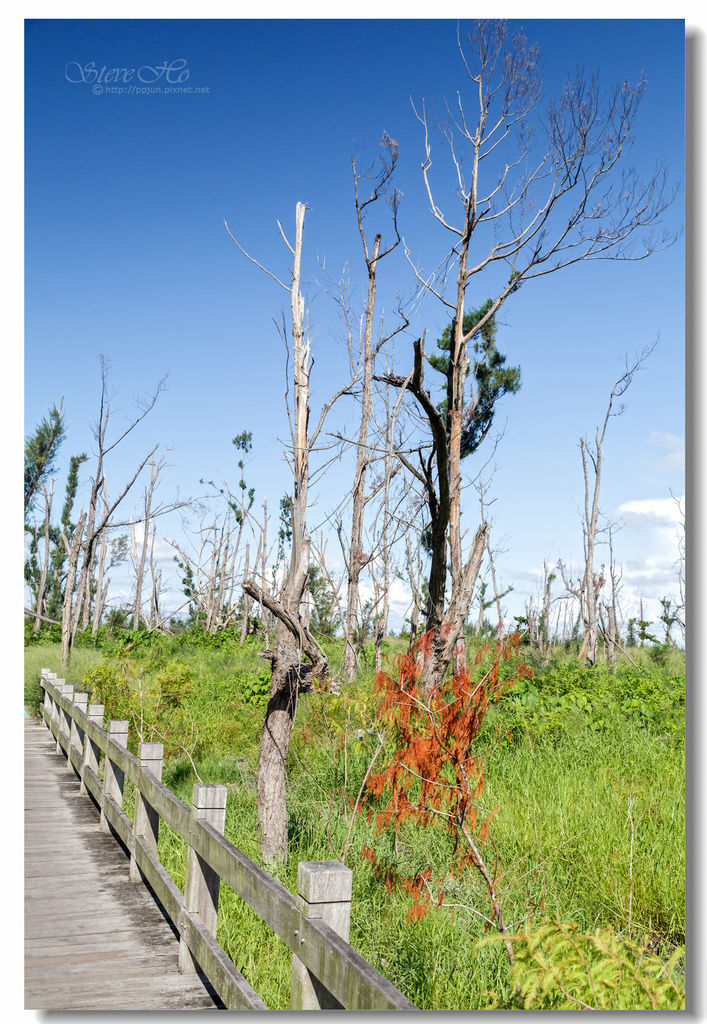 ▲ 走在長長的木棧道,心中浮現出許多疑問,路旁的樹木怎麼顯得有些狼狽?