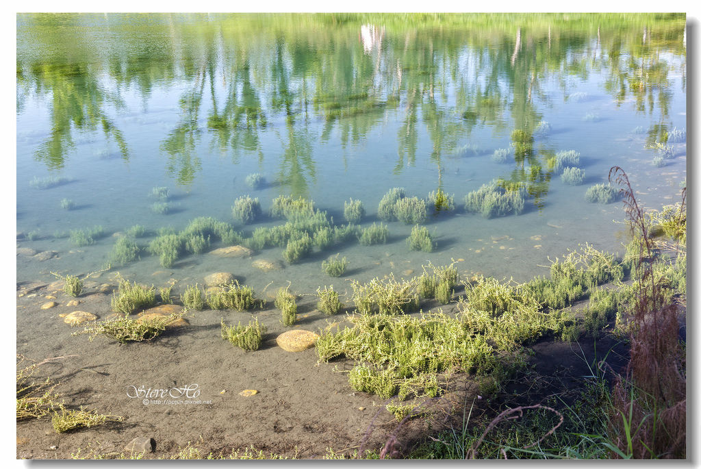 ▲ 湖底的水草與藍天白雲的倒影融為一體,彷彿仙境般的夢幻~
