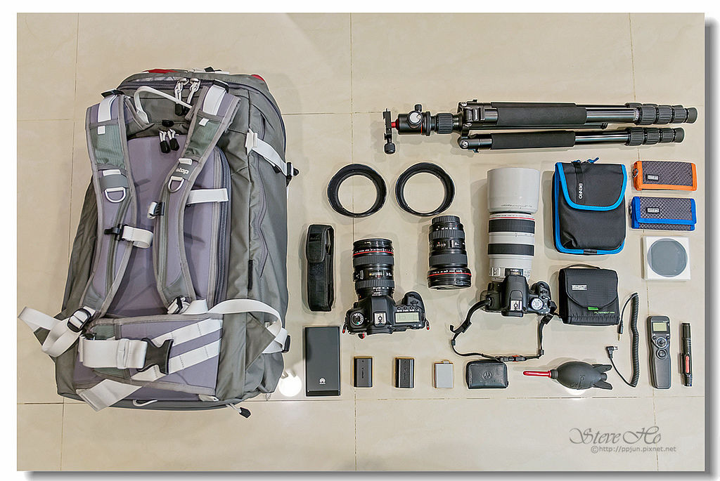 ▲ 平常出門背上2機3鏡、腳架、行李、濾鏡...等其它哩哩叩叩的機司,肩上的10幾公斤一直是個沈重的負擔。