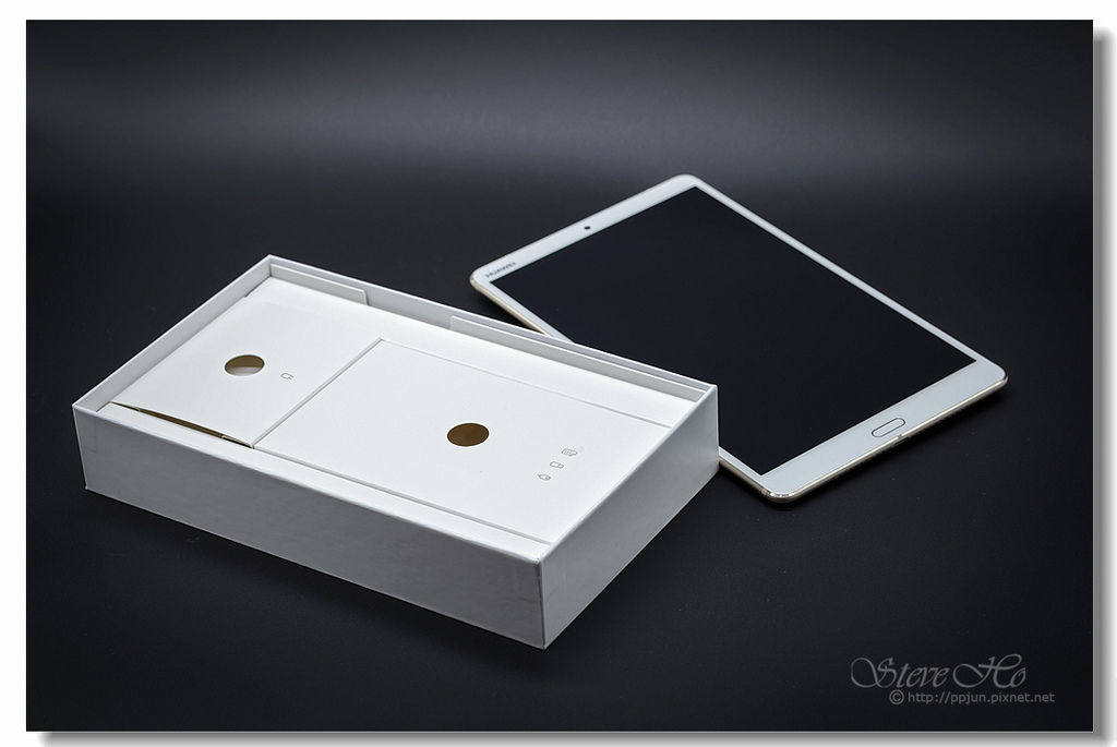 ▲ 掀開第一層盒蓋,HUAWEI MediaPad M5直接躺在那兒迎接您!