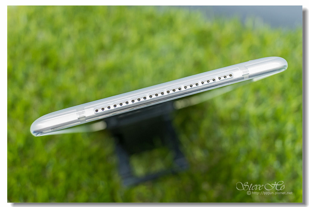 ▲ 揚聲器配置在直向的上下各一,共有45 個出聲孔,搭載立體聲雙喇叭,欣賞電影或玩遊戲時音效更立體、更有層次。