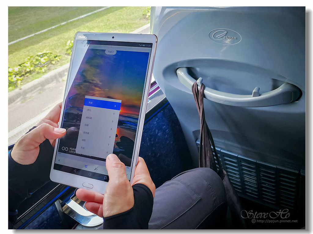 ▲ 回程在車上就直接用M5編輯照片。