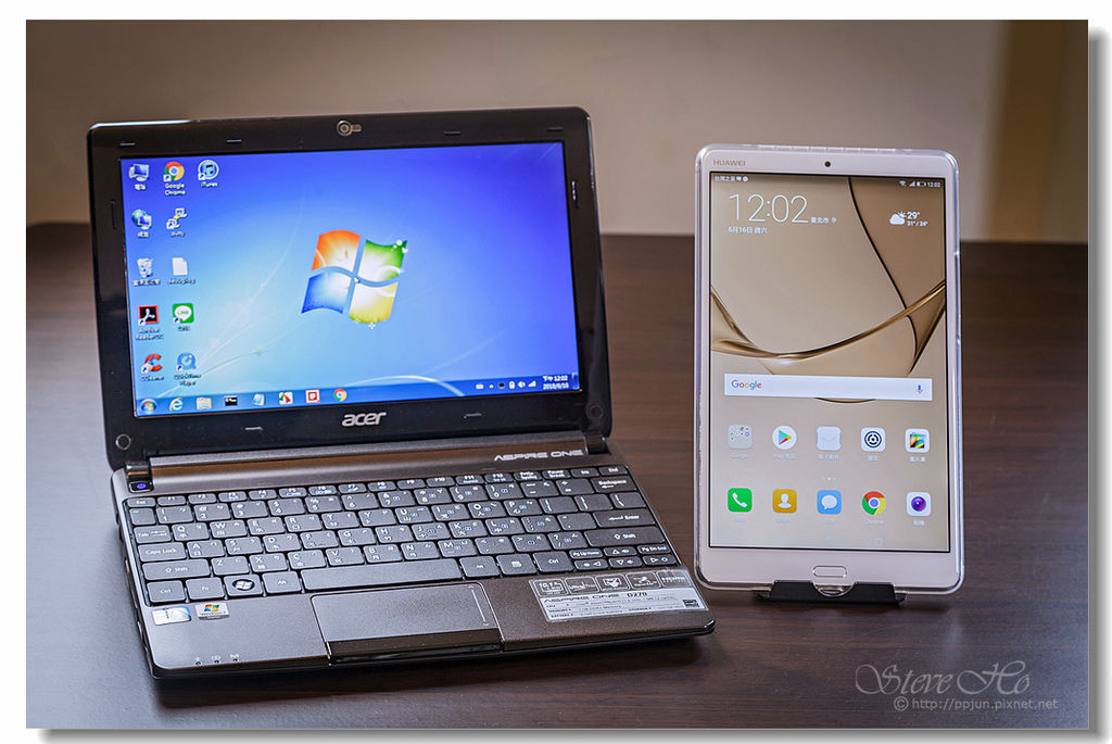 ▲ 受限於皮皮君的小筆電電池只能撐1~2小時,除非是應急,不然通常是到有插頭的地方才會拿出來使用,帶著體積不小、重量不輕(1.24Kg)的筆電,卻沒享受到筆電的方便,心裡很是煎熬,必竟換一台筆電會出走好多小朋友呀!就這樣帶著這台ACER Aspire One轉眼也5~6年了。一直在思考是否有一台設備可以取代筆電的角色,讓轉檔修圖能更輕鬆更即時。