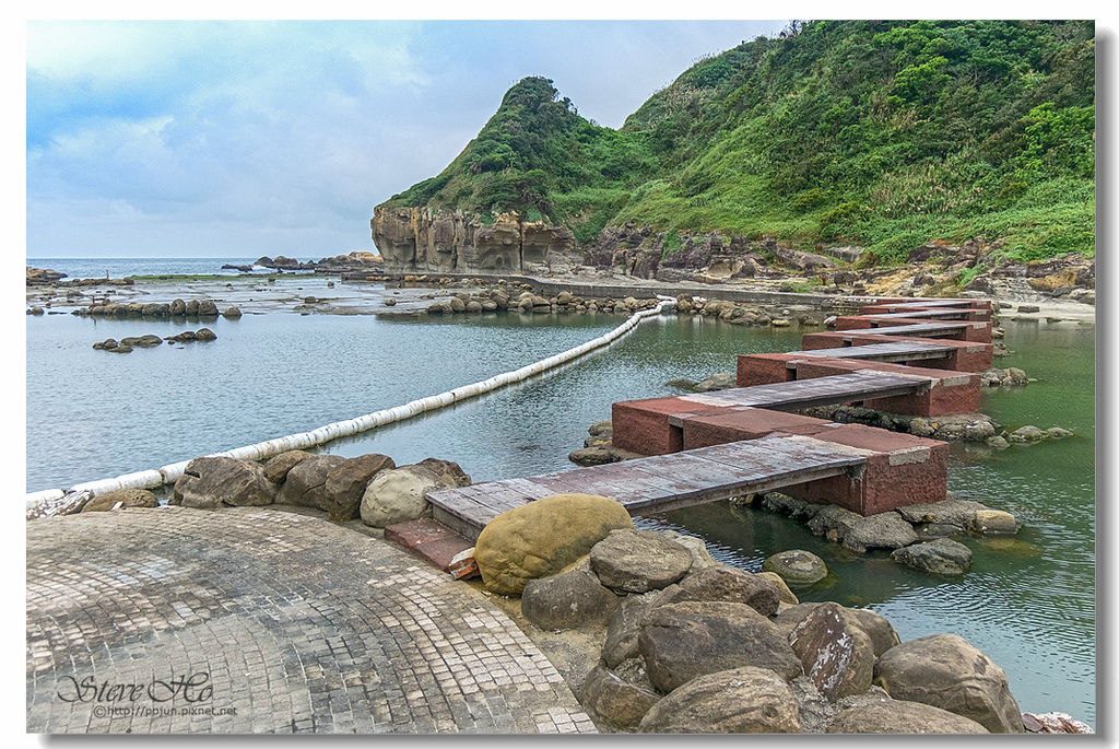 ▲ 在民國78年由前台灣省旅遊局頒發為風景區,當時的管理者竟將自然資產出租給養殖業者,形成「風景區內有九孔養殖池」的不協調畫面。然而錯誤已經造成,基隆市政府只能將九孔養殖池收回,以水道引進天然海水,變身成海水游泳池。現在,藍海水池已成為和平島公園內最受歡迎的設施之一。
