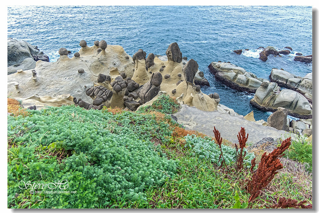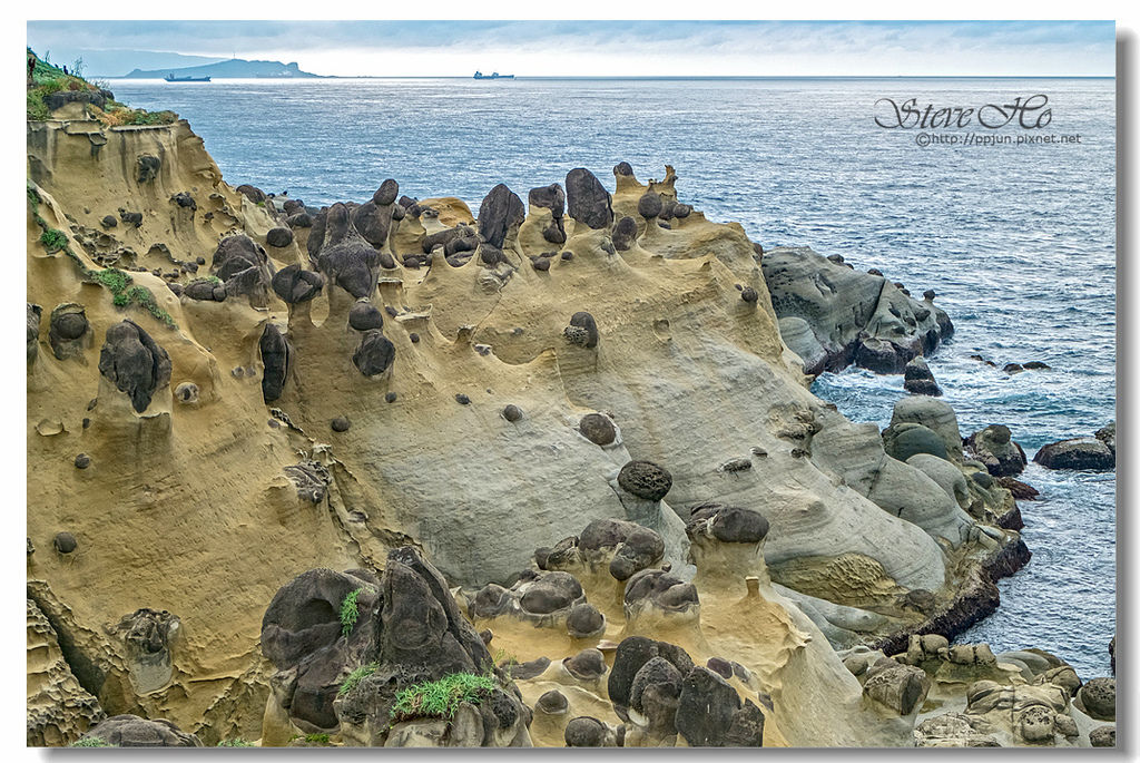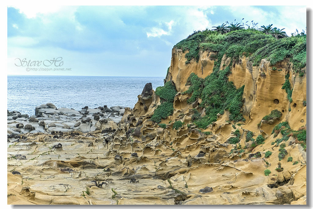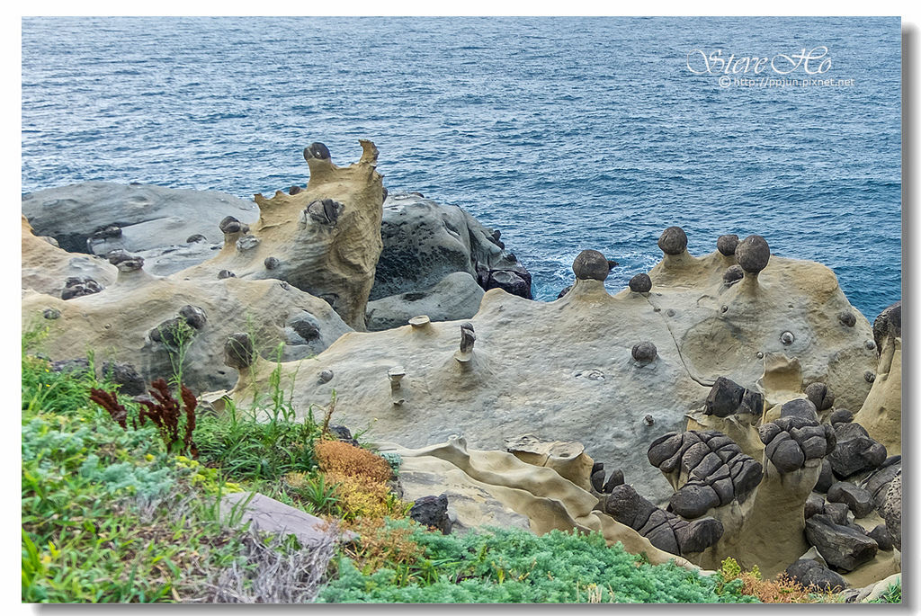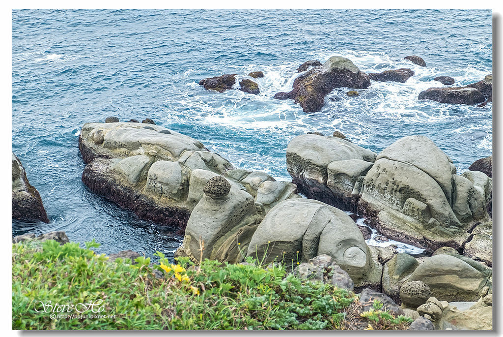 ▲ 海蝕平台、豆腐岩、海蝕溝、海蝕崖、風化窗、萬人堆、千疊敷、海蝕洞、蕈狀岩、獅頭岩、熊頭岩等。