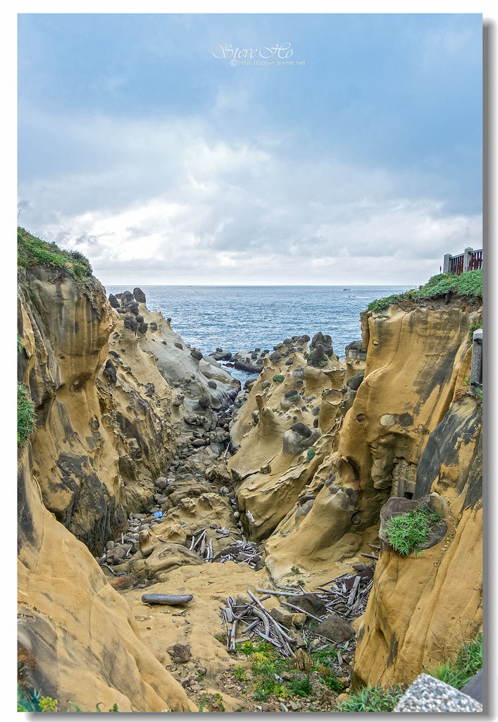 ▲ 兩座山壁被強力的海蝕劃出一條深深的海溝,海水不斷沖刷進來,形成【海蝕溝】