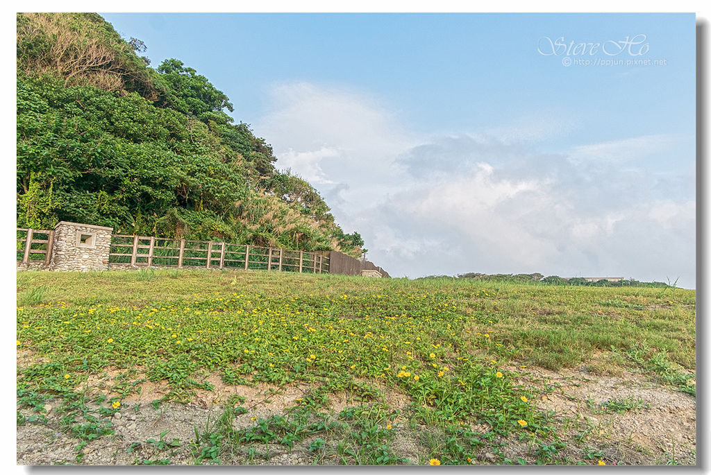 ▲ 步道的終端是一片綠草空地,圍牆外是【藍海水池】。