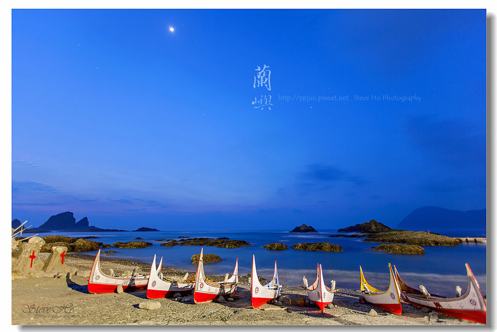 ▲一輪明月高掛天空,藍調的東清灣搭配星空下的拼板舟顯得格外夢幻