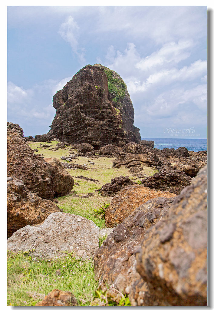 ▲老人岩四周為火山爆裂口,只要過經過紅頭村草原,再攀爬過峭壁便可抵達。