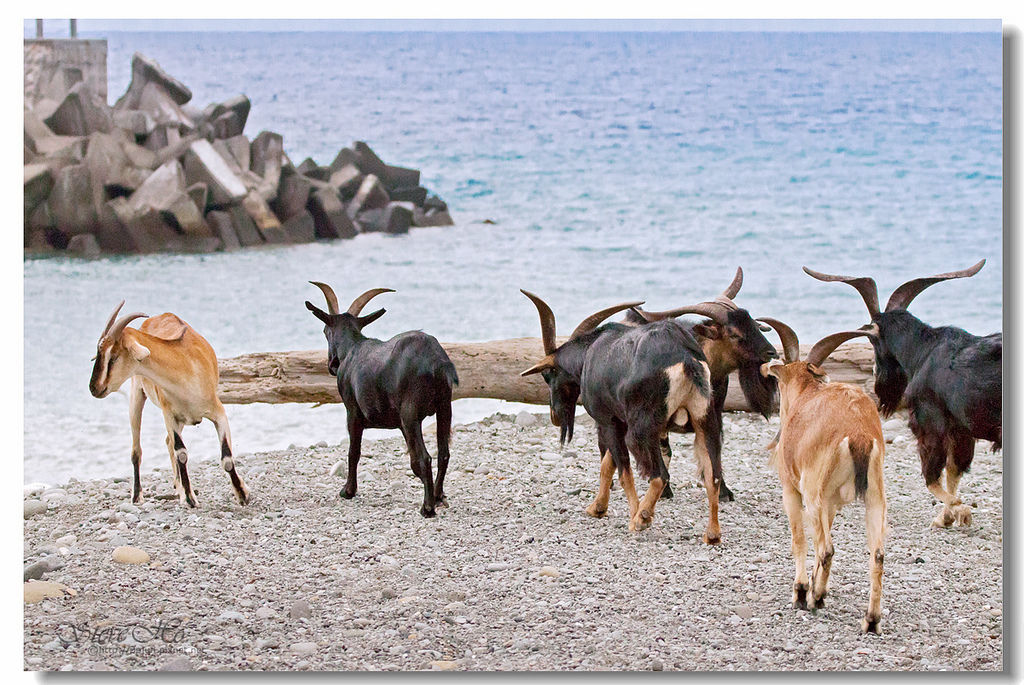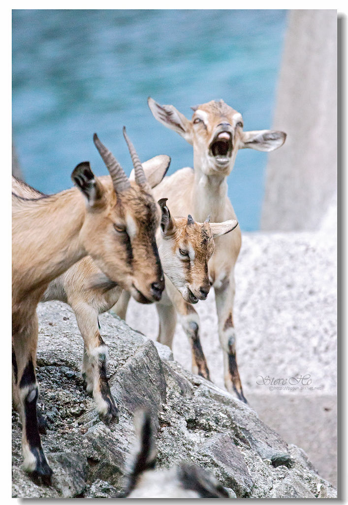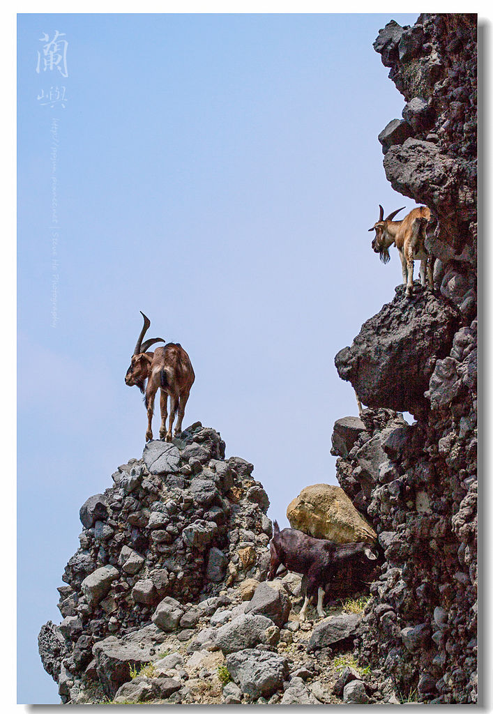 蘭嶼的羊群傍晚會聚集海邊,獨自站在二、三十公尺峭壁,或成群在礁岩上,海浪拍打和海風吹襲,這群羊絲毫不為所動,似乎在沈思著做羊的道理 ^^