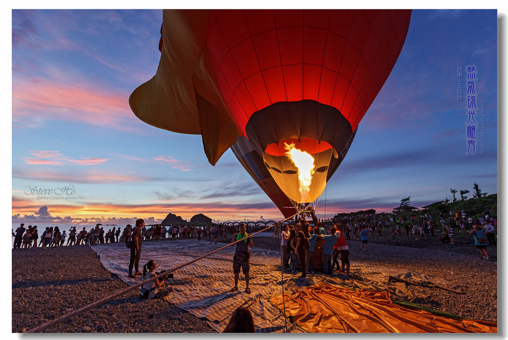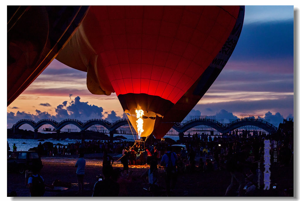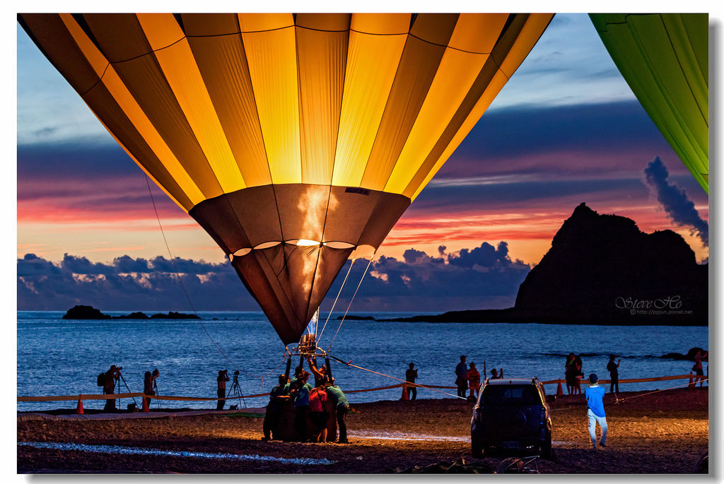 ▲當熱氣球光雕音樂會遇到三仙台火燒雲大景,一時難以決擇,就兩者一起入鏡吧~XD