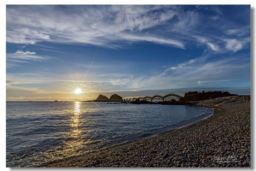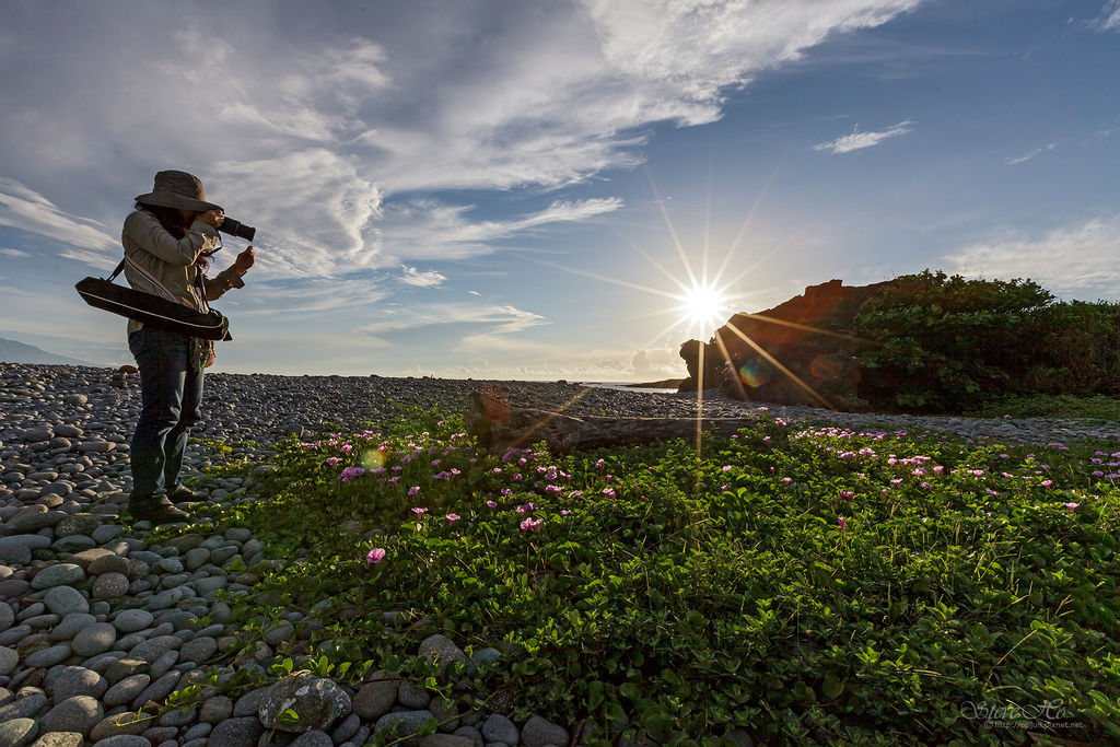 ▲看著太平洋上的第一道曙光由海平面沿伸至岸邊,在水面拉出一道金色光茫,心中有一份莫名的感動呢!