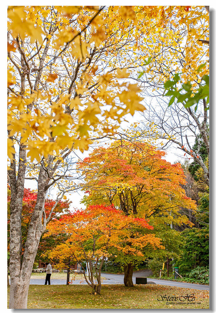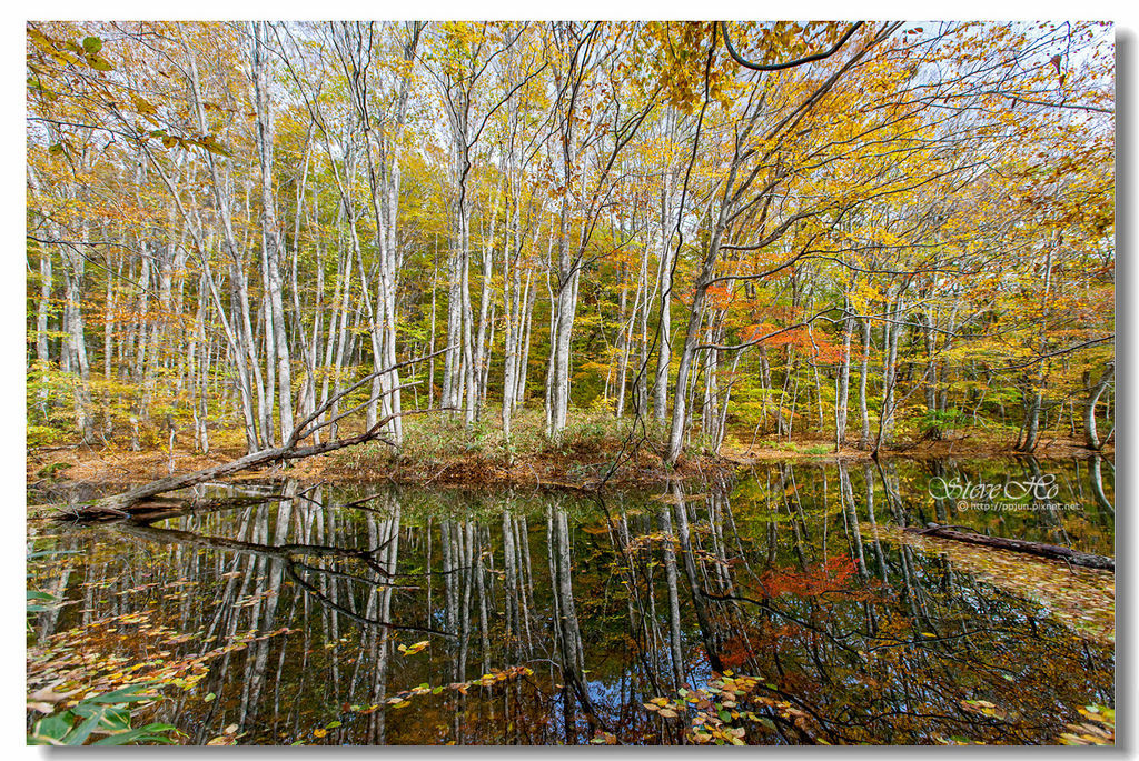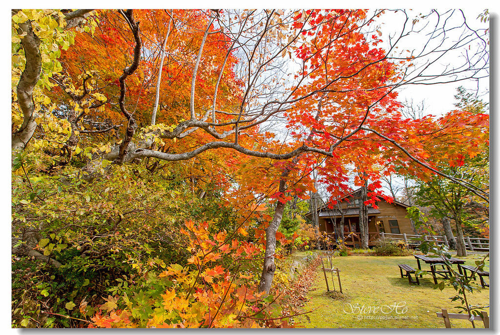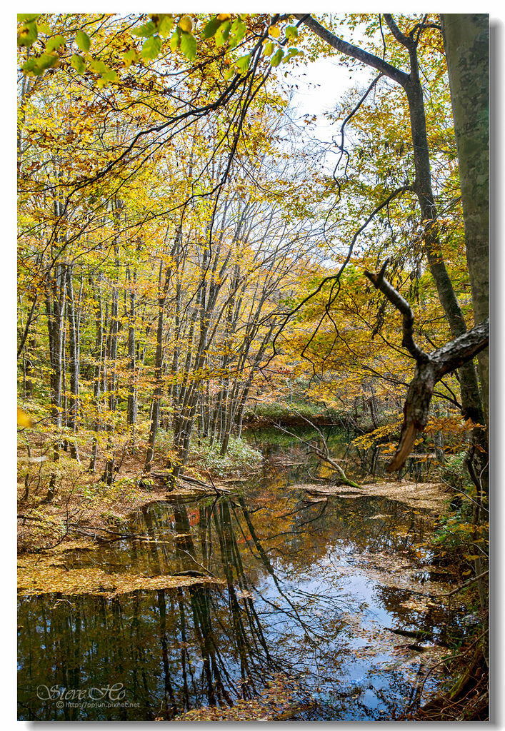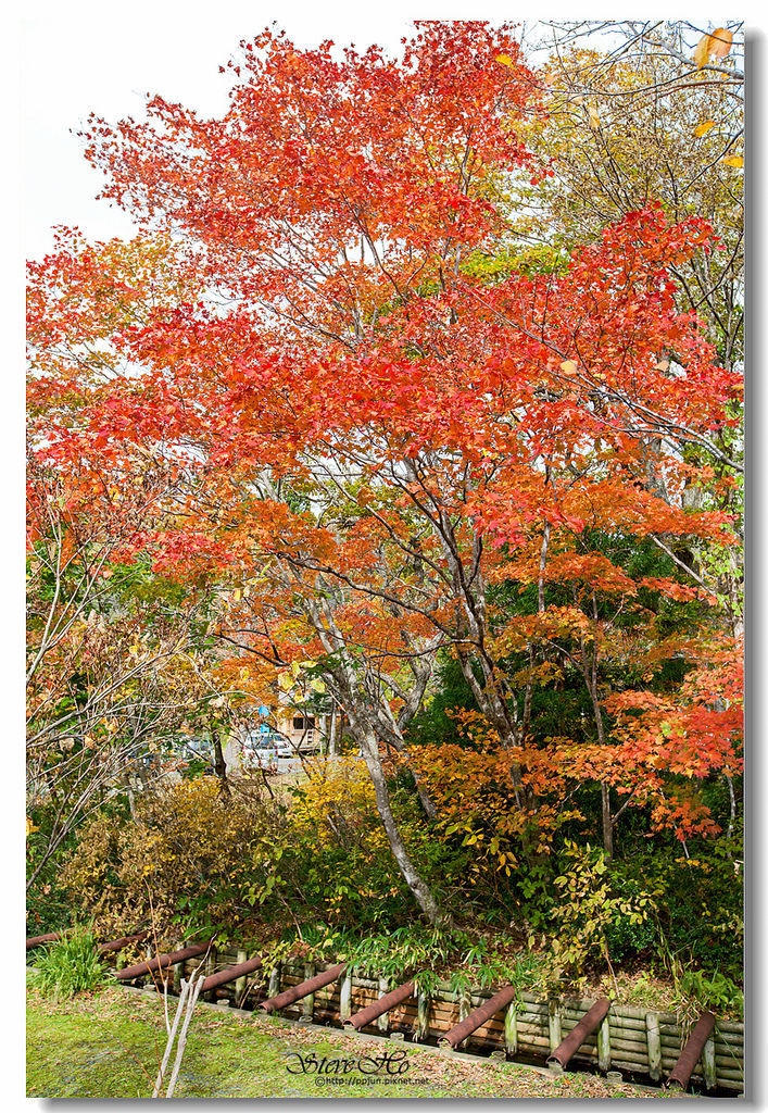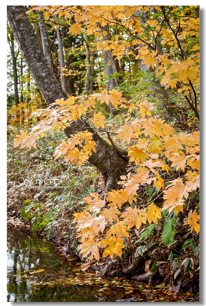 ▲ 要看到蔦沼最著名的「朝燒」,就只能在每年深秋的紅葉季節前往。但即使在楓紅最美的季節到達蔦沼,沒有好天氣或沒掌握好時機,你也是看不到火紅的蔦沼美景的。因為唯有在每天早晨、日出後的10分鐘到半小時間,曙光照射下的蔦沼,才有火紅的、如火燒般的絕景。可惜行程上無法安排在日出前抵達,但眼前的美景已的讓皮皮君心滿意足了!