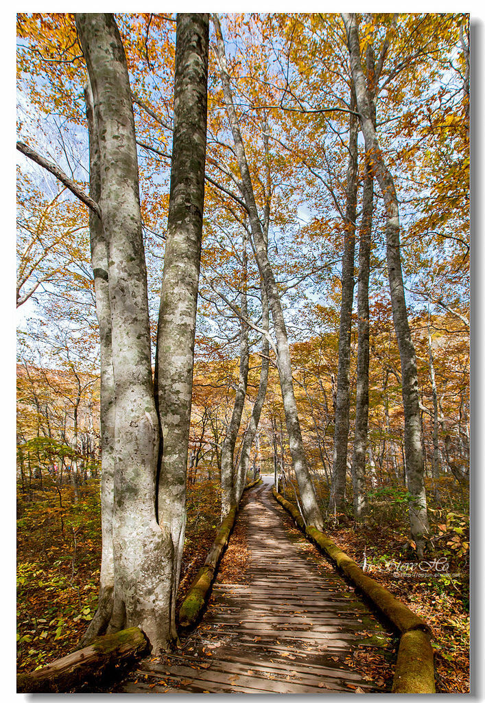 ▲ 蔦沼就在蔦溫泉旅館旁的「沼めぐりの小路」進入,順著步道走即可到達。