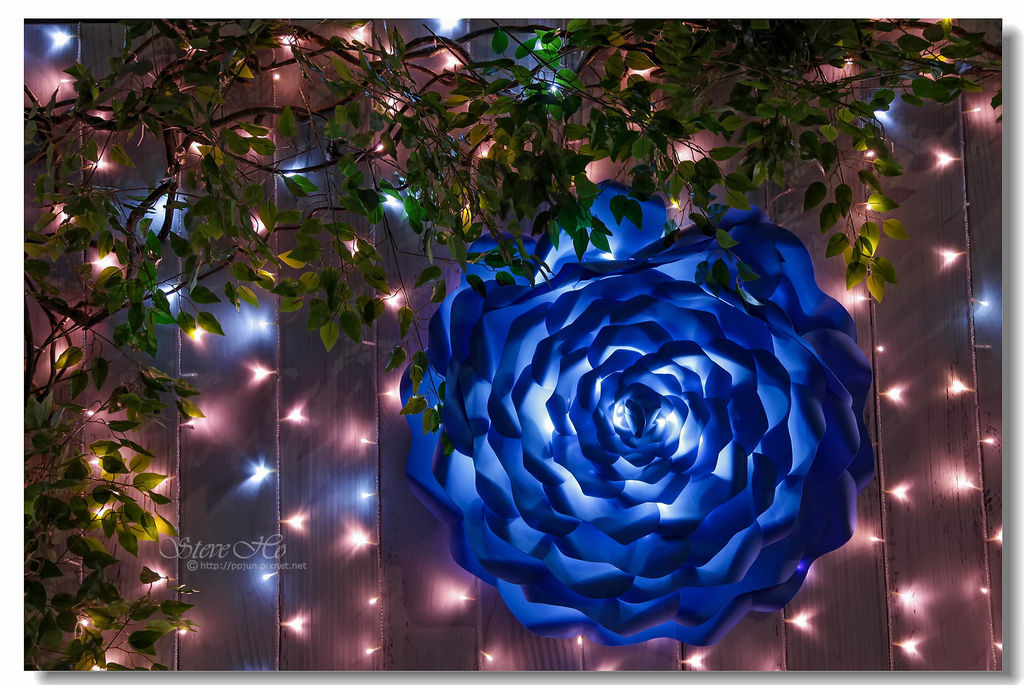 ▲抬頭仰望,看見充滿星空的夜晚搭配著神祕藍光,