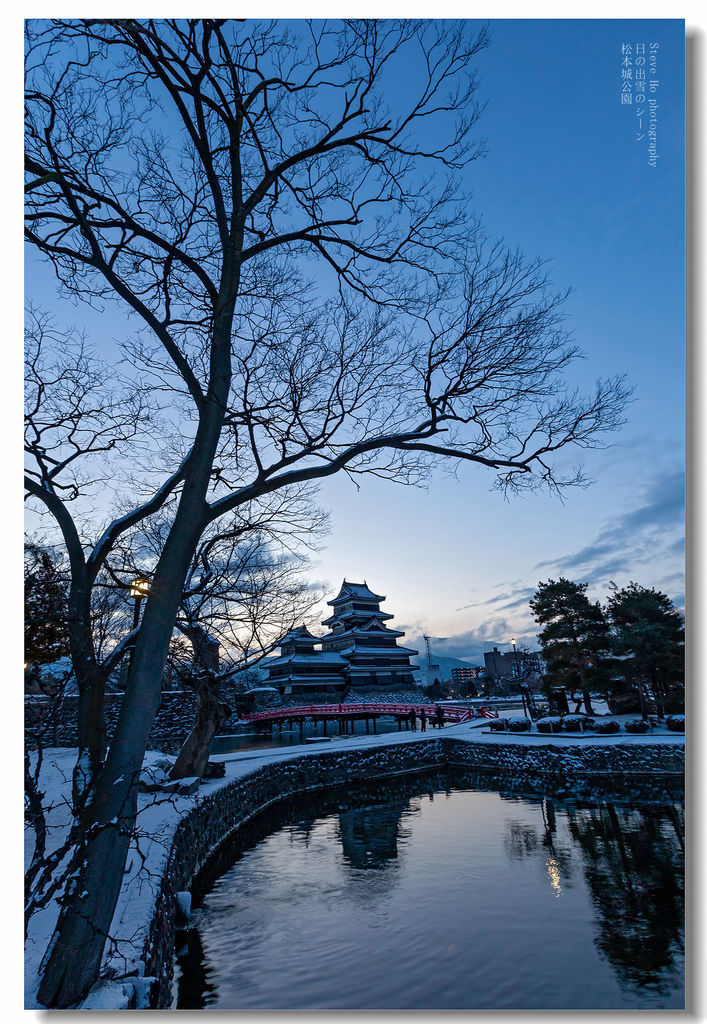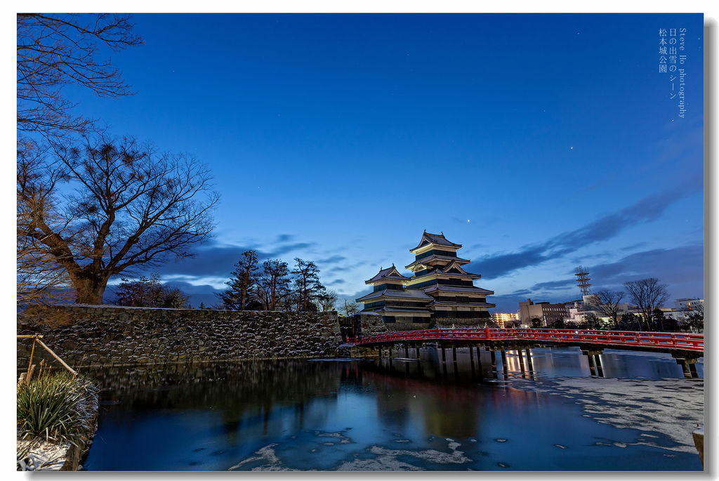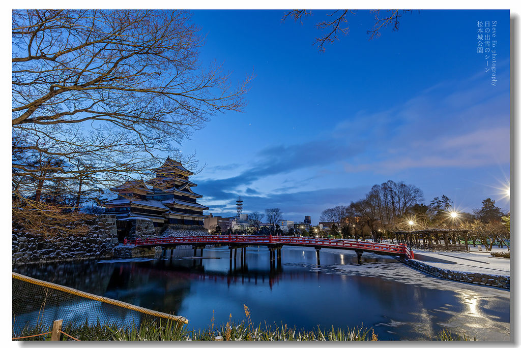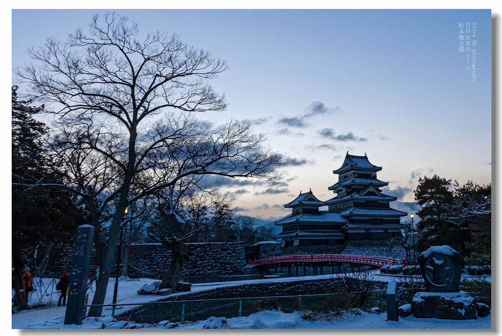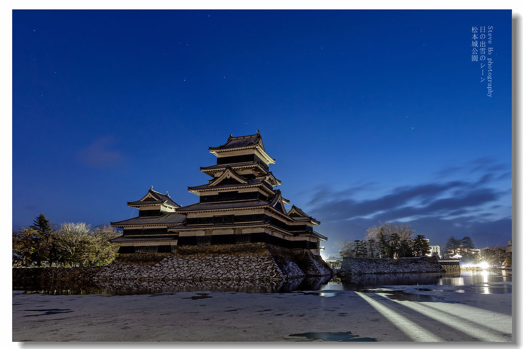 ▲ 來日本的第一天早晨,凌晨04:00就爬起床,只為了捕捉松本城日出藍調雪景的夢幻時刻!