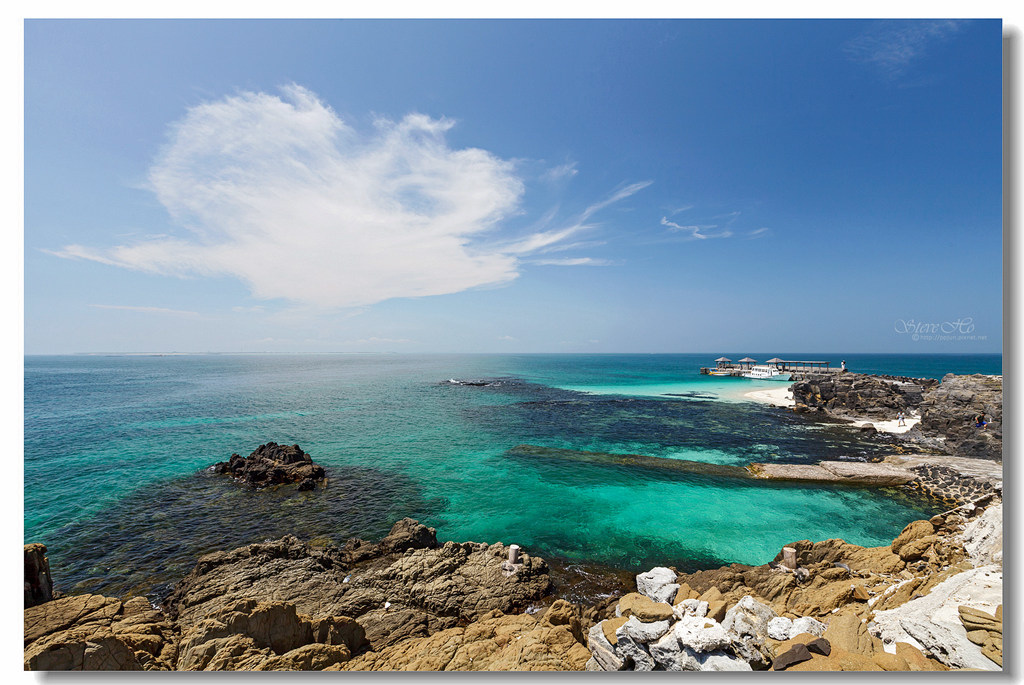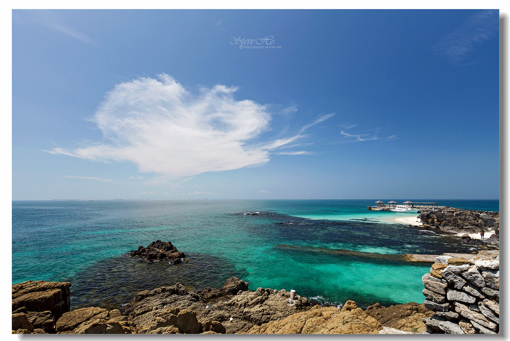 ▲ 湛藍的天空、很有戲的雲朵,搭配湖綠色漸層的海水,美得令人捨不得離開。