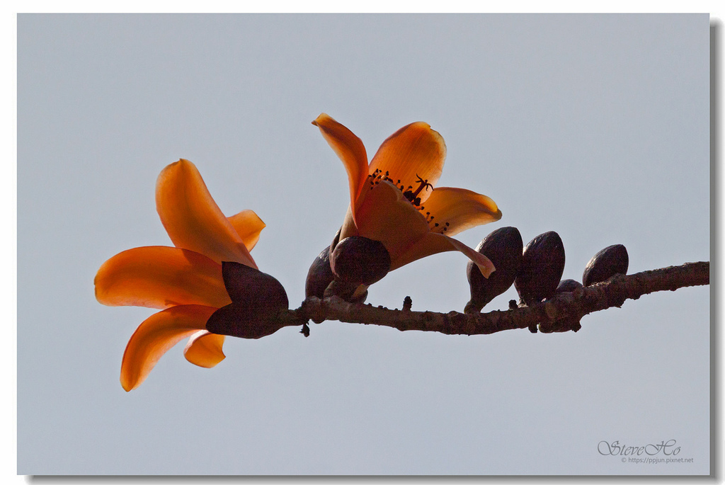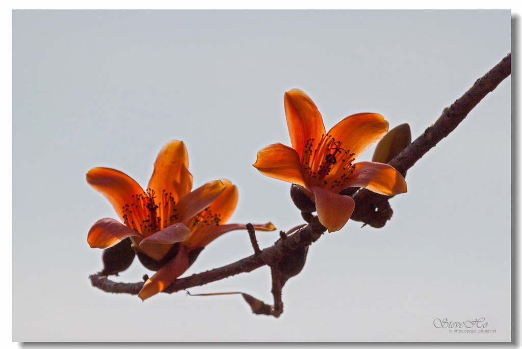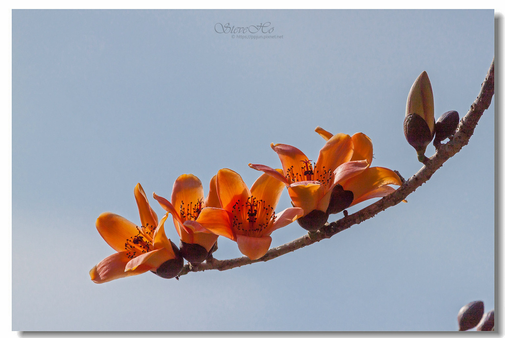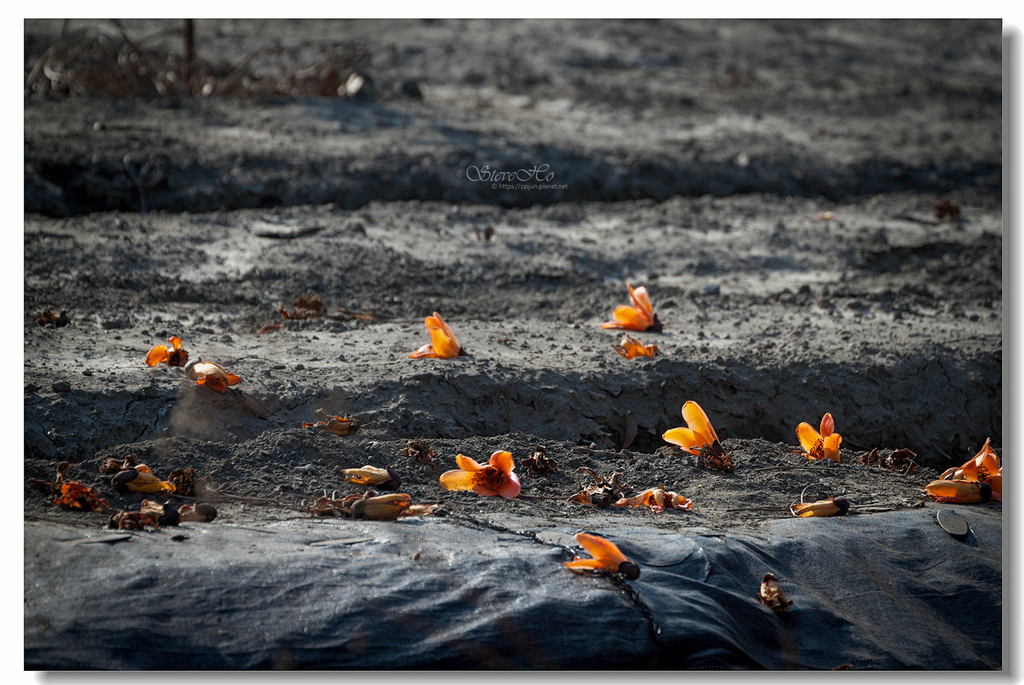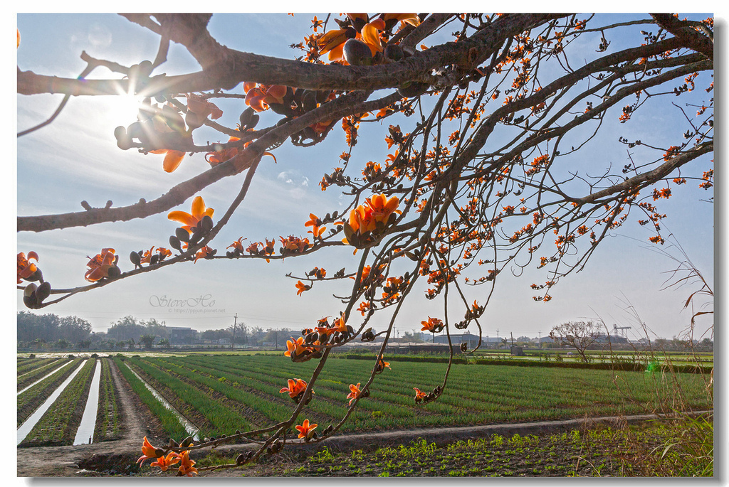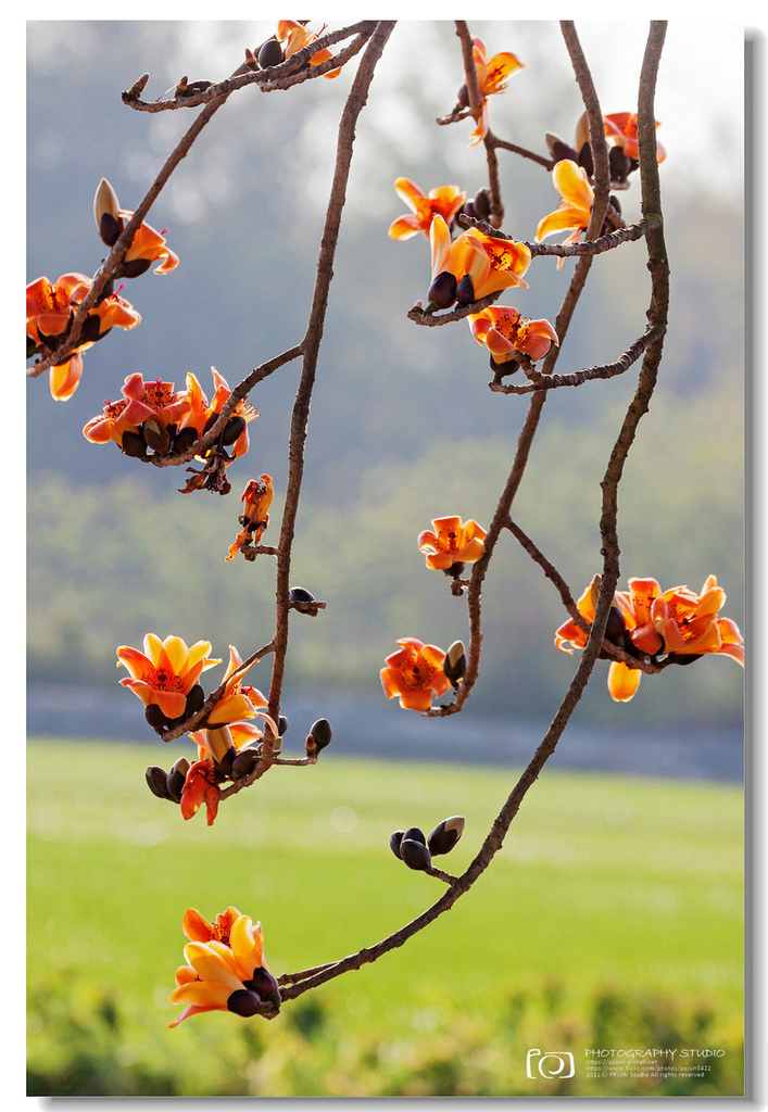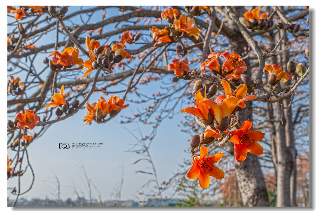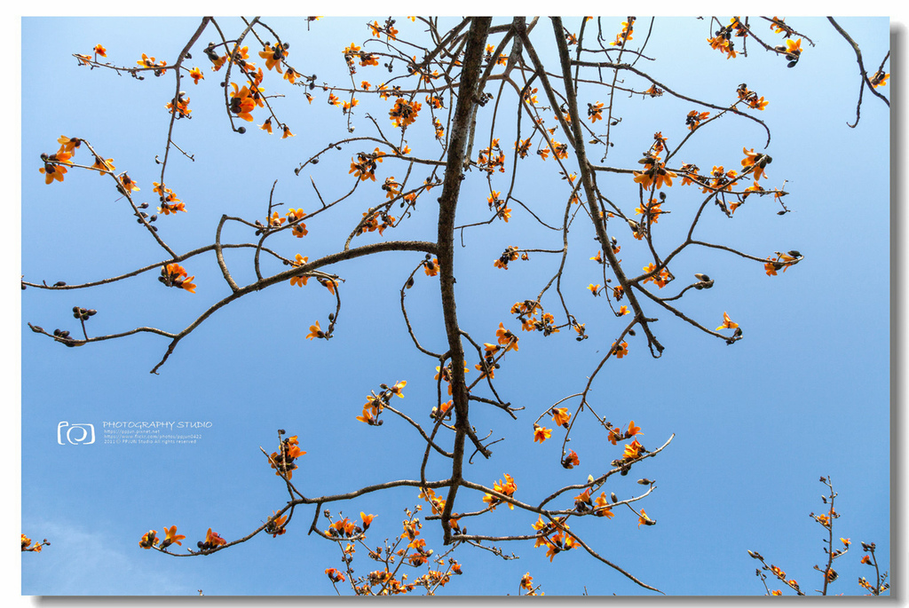 ▲ 不規則的枝頭上點綴著橘紅的木棉花,好似阿媽碎花布上的圖案~ ^^