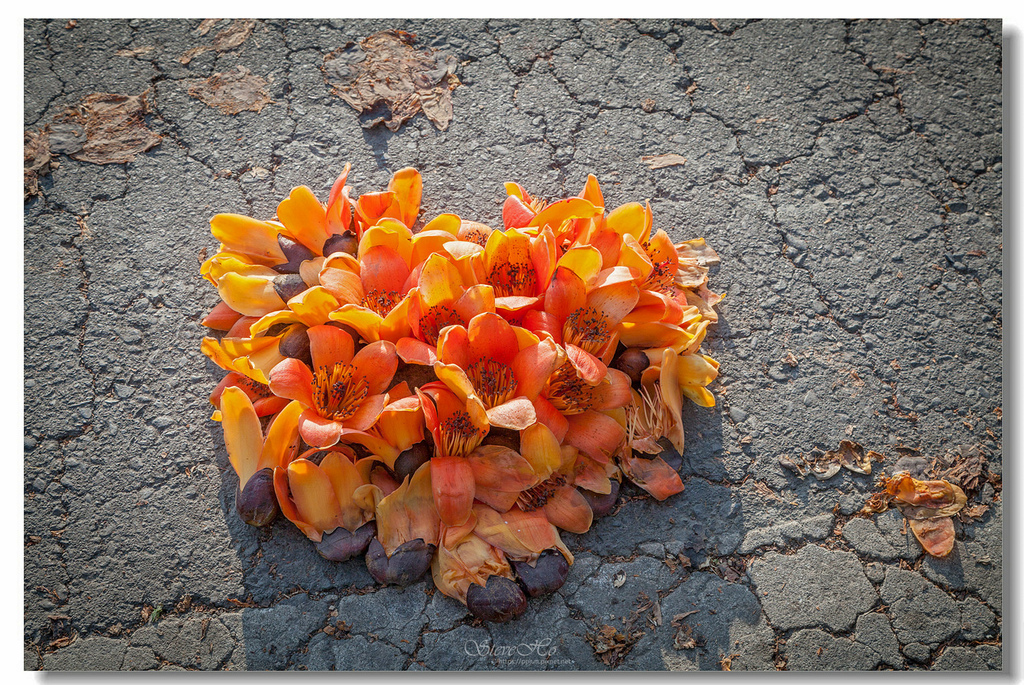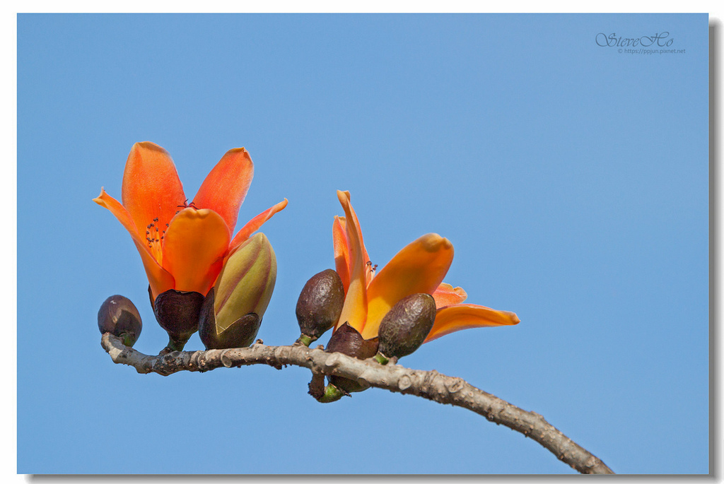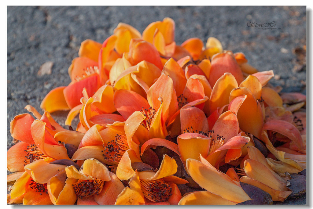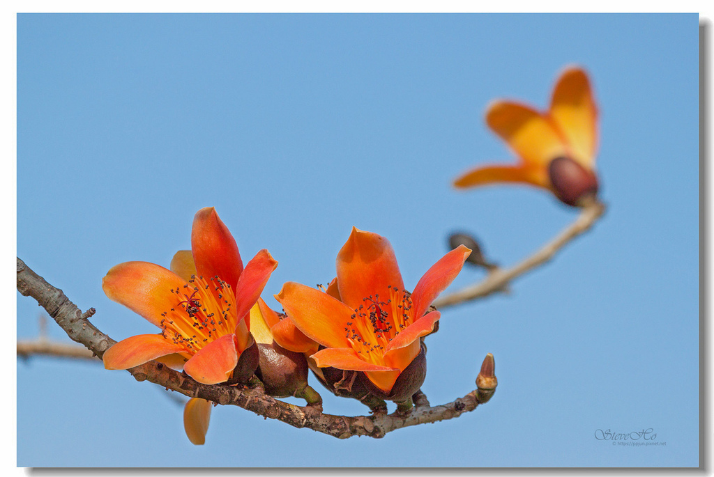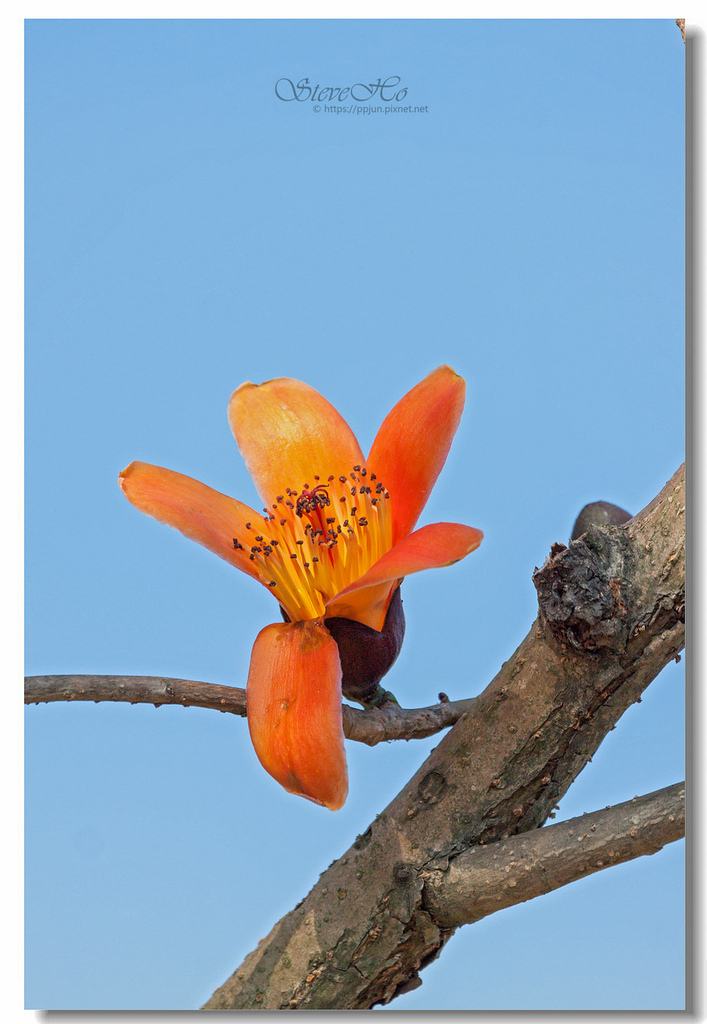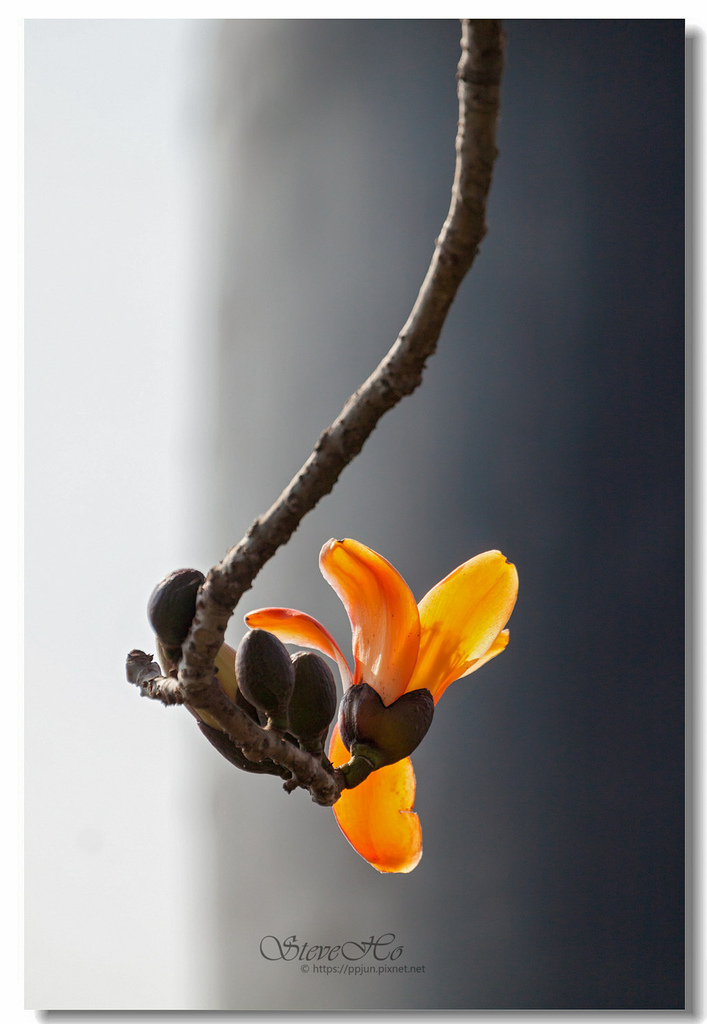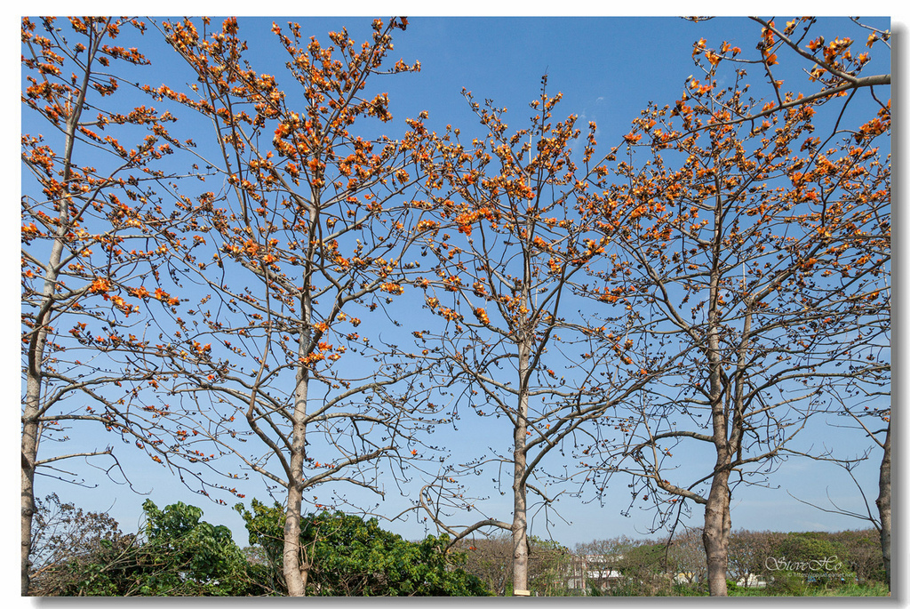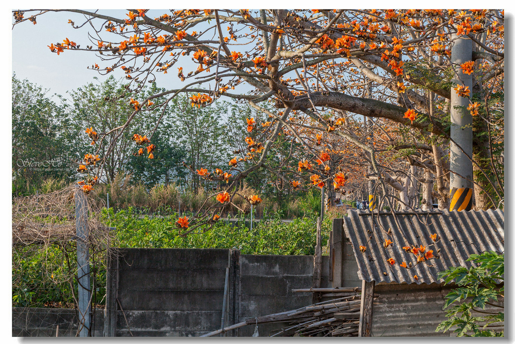 ▲ 不規則的枝頭上點綴著橘紅的木棉花,好似阿媽碎花布上的圖案~ ^^