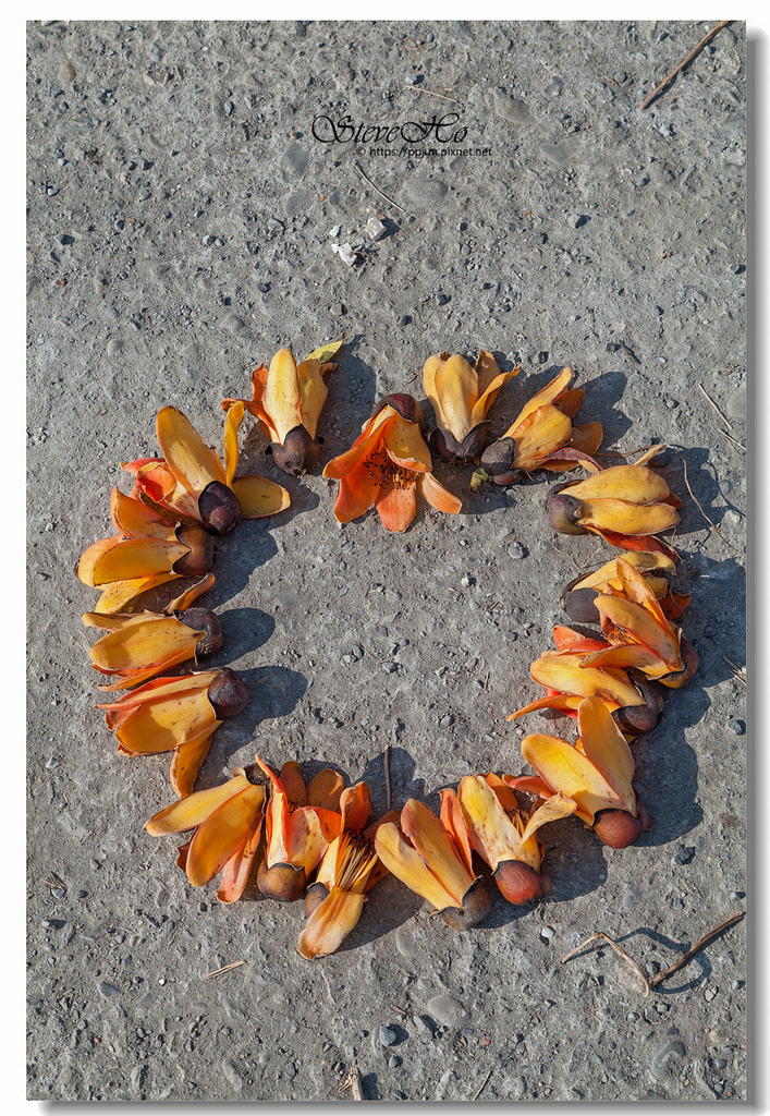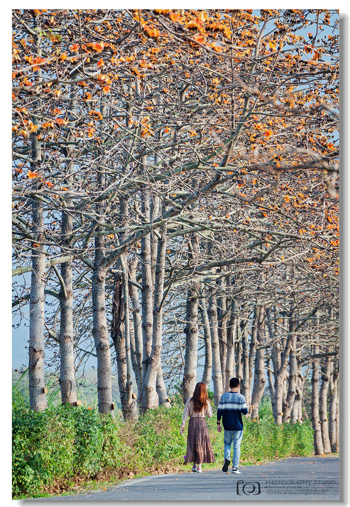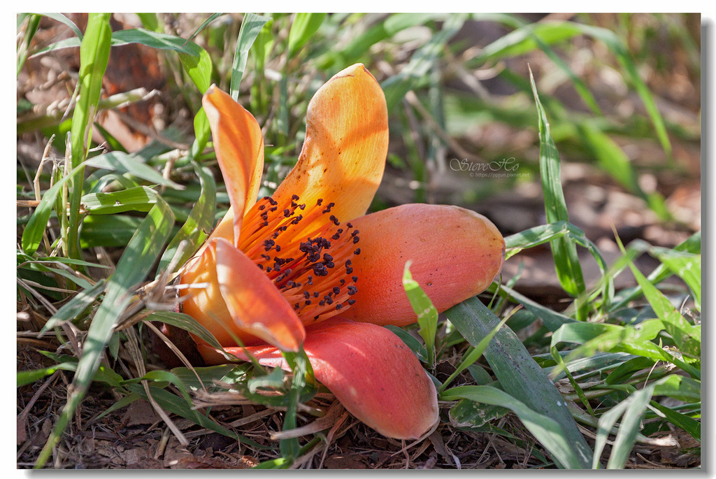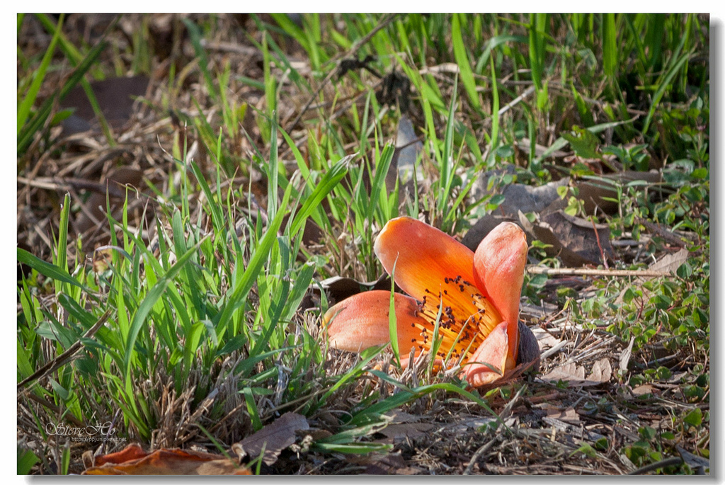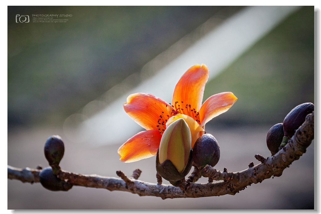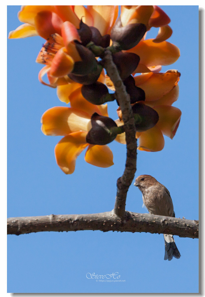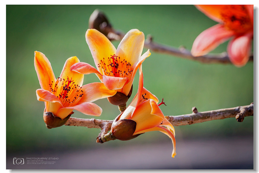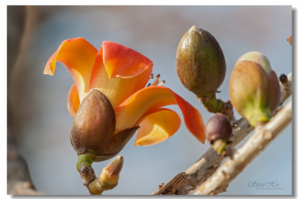 ▲ 不規則的枝頭上點綴著橘紅的木棉花,好似阿媽碎花布上的圖案~ ^^