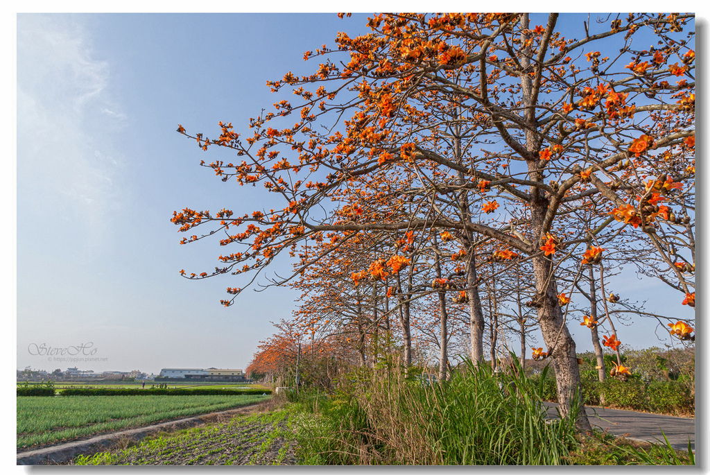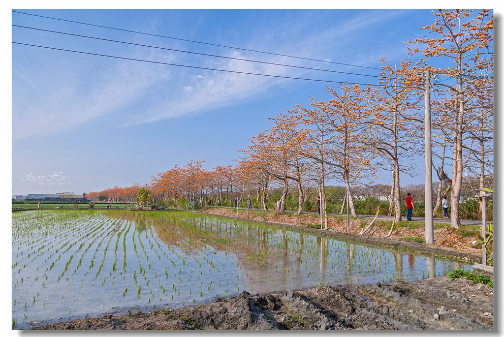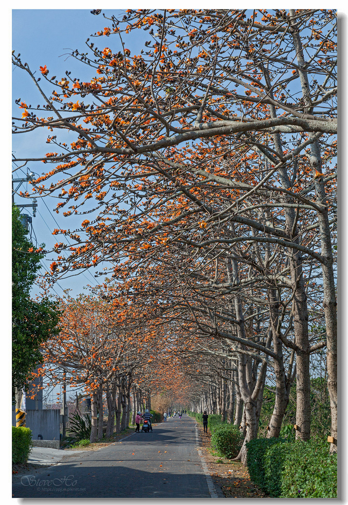 自從白河林初埤木棉花道被列為全球最美花海街道後,每逢花季遊客爆多,滿滿人潮,想拍空景幾乎是不可能的事。於是皮皮君這次選擇來到較少人的二林東螺溪木棉花道