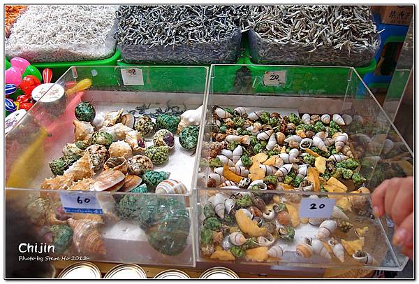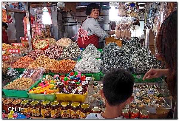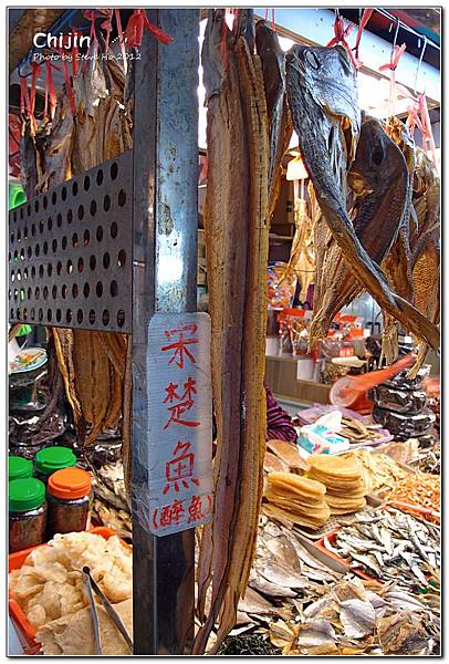 34.旗后觀光市場內幾乎都賣海產乾貨的店家,但是,海產乾貨的種類原本就不多,現場這樣左右兩排共百餘攤的場面,就造成了重複性超高的結果,每種產品都有好幾個攤位在賣,逛一圈下來,我們都覺得沒什麼新鮮感,自然就沒什麼購買的慾望啦.....